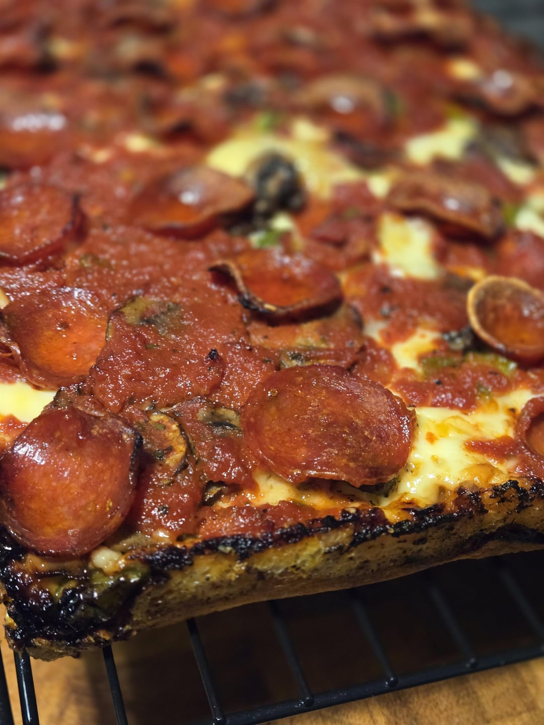 Sourdough, 12 hour warm proof. Did not par bake any of them. Light fluffy and some of the best results we’ve had on the dough even under the very mushroom and truffle aioli heavy one.