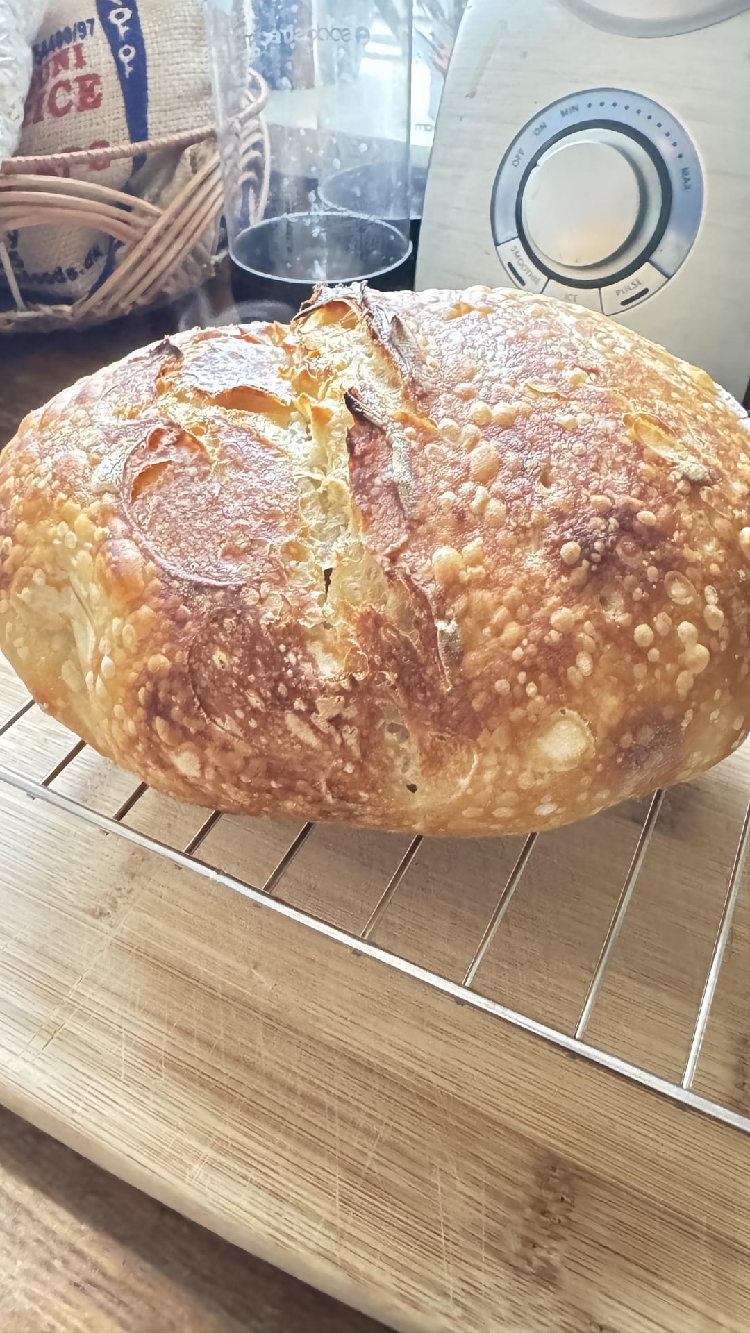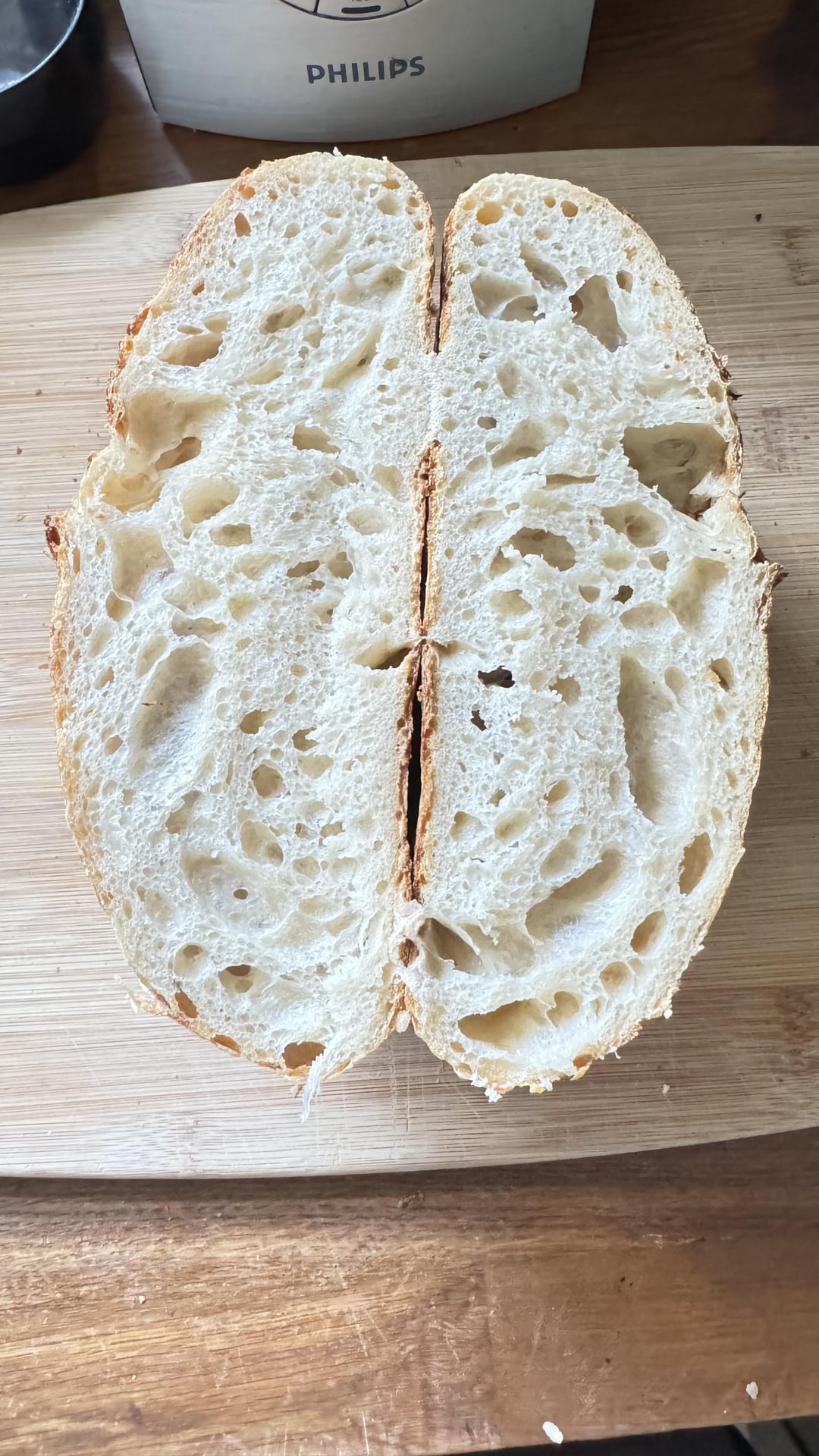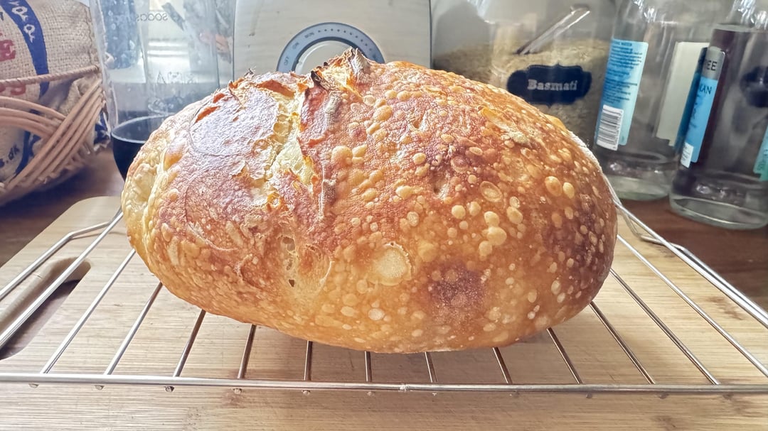 I’ll start by saying that I didn’t get the oven rise exactly like everyone says it should be, but everything else was so perfect that I don’t even care! β€οΈ I was just about to give up on this whole baking thing (love cooking, not so great at baking because I don’t have patience to wait for this or that π ), but THEN!!! – I finally got a bread I am proud of. The taste is amazing, the texture of the crumb is JUST like I like it and the crust is perfect for me as well. Yay! ππ» Oh, and I cooled the bread on a rack for 1h.