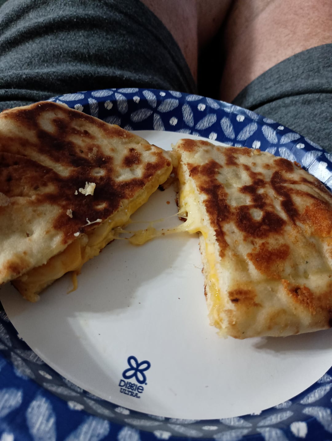 I put a slight drizzle of sweet chili sauce on mine. It's pretty good but even with the sauce, the garlic in the naan is heavy