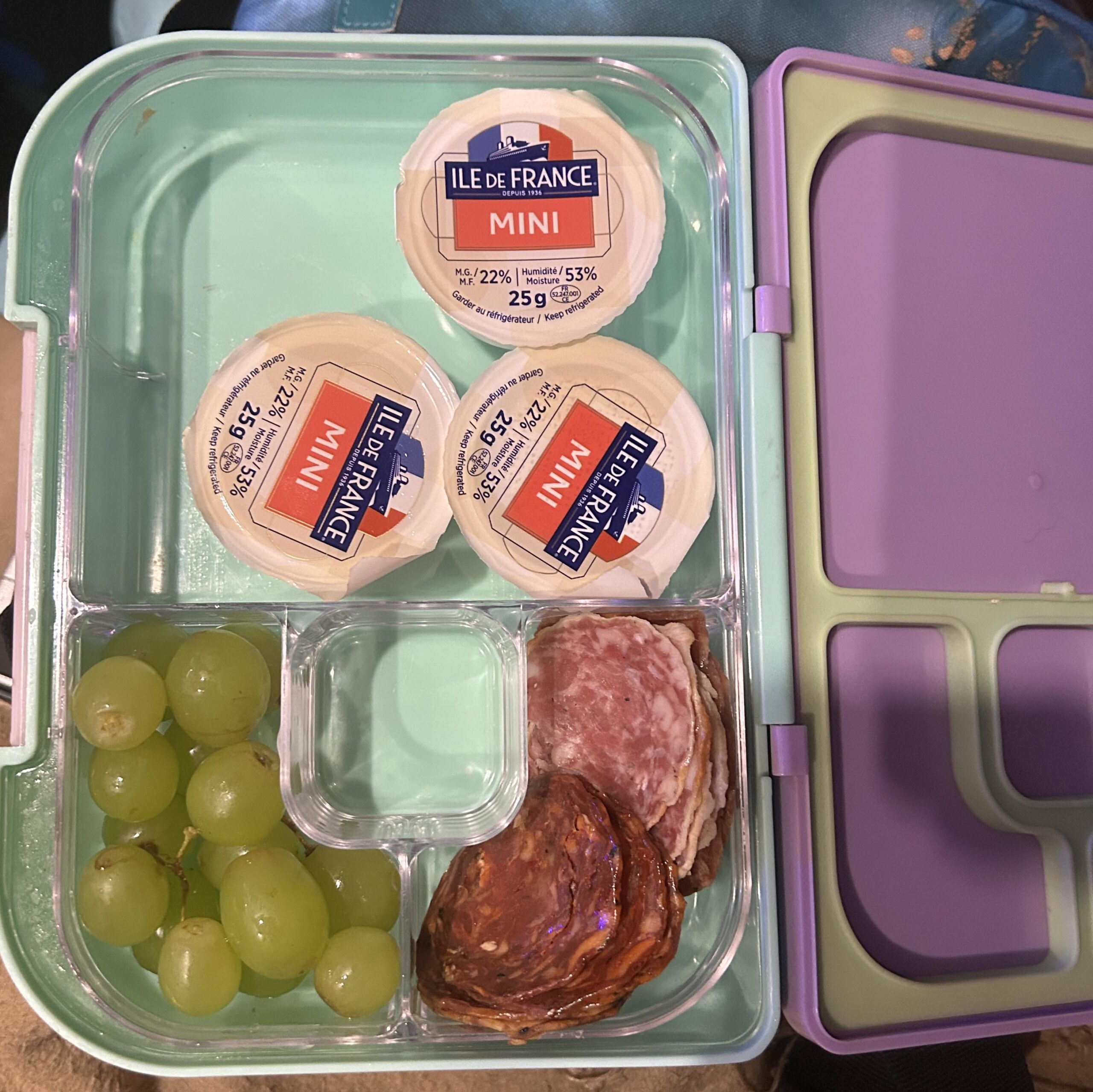 I’m lazy to unpack the cheese from their packaging. Putting crackers tomorrow. I’ll be looking for other lunch ideas as well. Crackers will be triscuit.