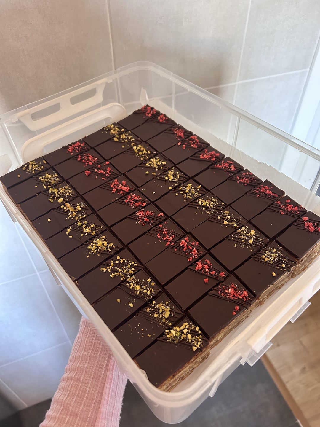 Excellent! This cake is popular in Croatia as well (Žerbo kocke).