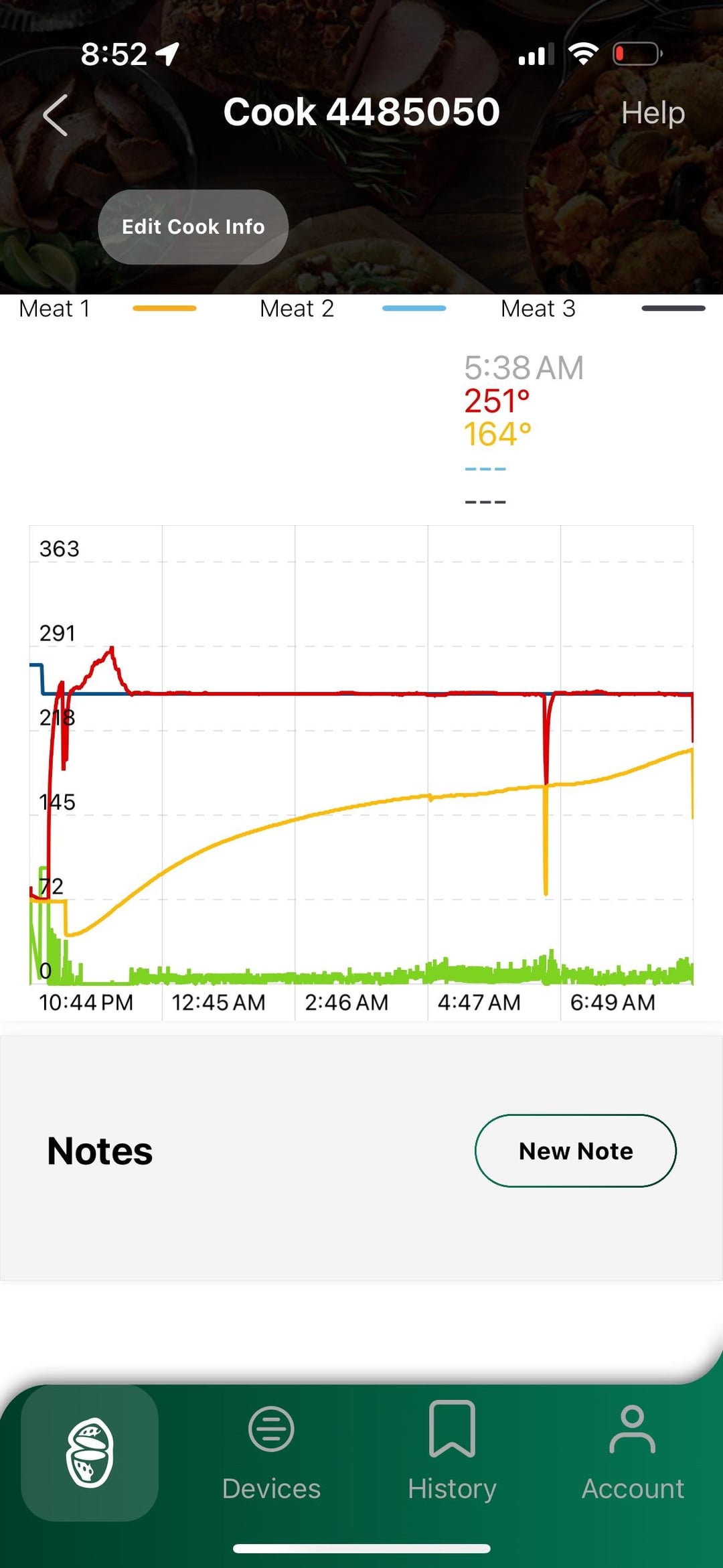 I was quick to get to temp and meat going as you can see. uncovered for 7 hours, wrapped at 165 and pulled at 203 about 3 hours later. I kept it in a 175f oven for another hour and a half before transporting in a cooler to serve 4 hours later. I pastrami brined it, thus the color. Came out juicy and maybe a touch over/shredable on the point side.