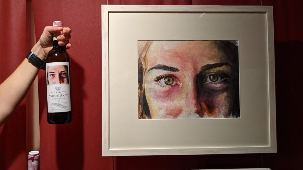 One of the most popular and delightful labels that the winery puts out is known as “Magic Mountain.” Every year they have a contest and invite artists to submit their work for a possible label on one of their wines. The response—and the results—have been terrific. The contest is open to Greeks and foreigners. They started this tradition in 1990 for their red selection, and in 1993 for their white.