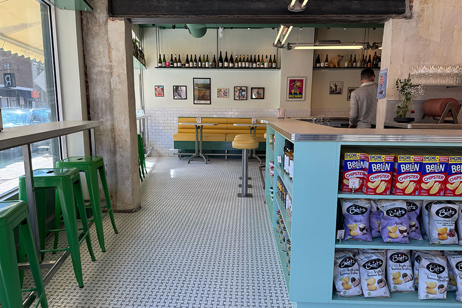The aesthetic is … like an Americana luncheonette or diner meets a very kind of Frenchy market wine bar, or cave à manger, if you will.