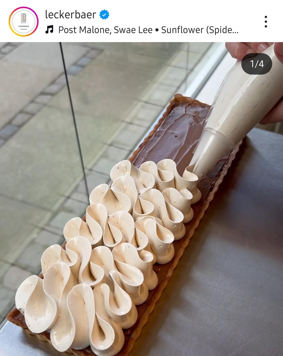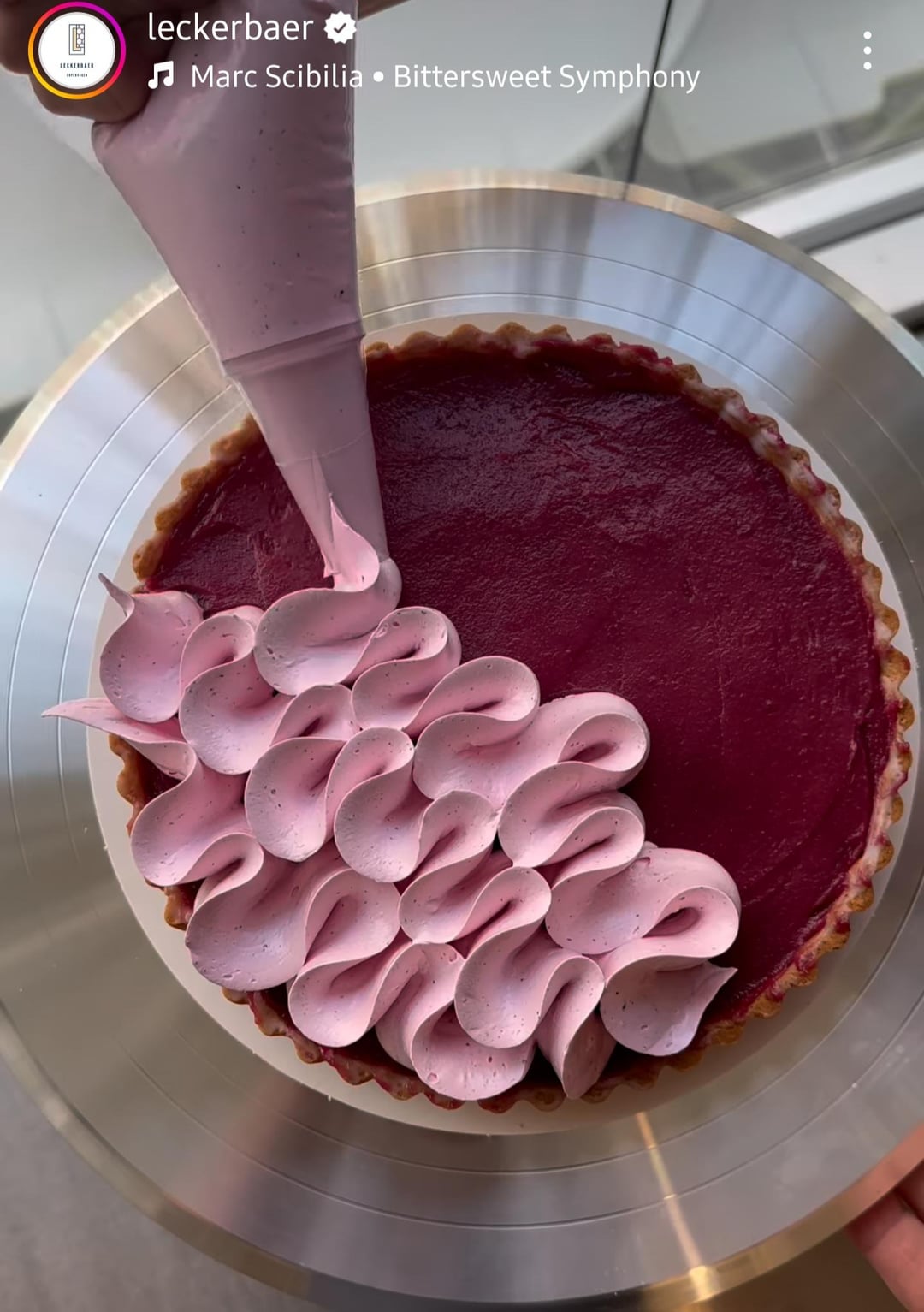 And the [white one](https://www.instagram.com/p/DF8CxEPM4w4/?utm_source=ig_web_copy_link&igsh=MzRlODBiNWFlZA==) is noted in the comments as meringue – I would assume probably also the Italian variety. If you scroll through the images on the post, you can see the finished piping has toasted tips, which would only be possible with a straight meringue.