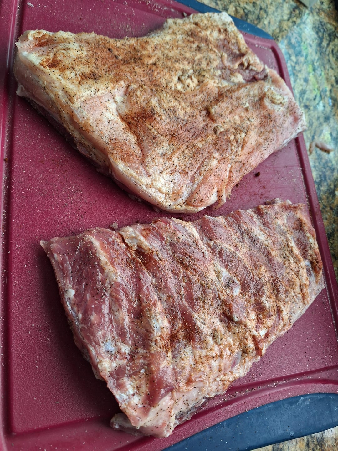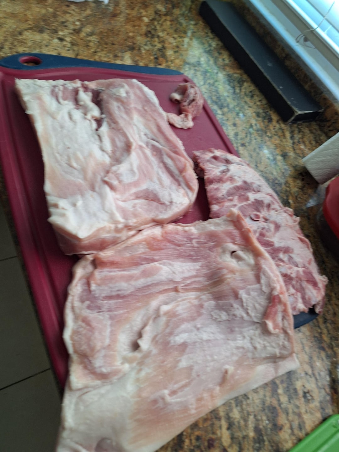 Couldn't get actual porkbelly, got side pork. So it came with ribs, split them ans did the ribs for later.