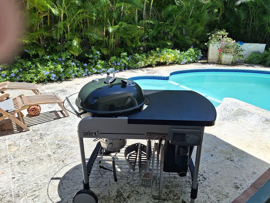 About 265F for somwthing like 3.5 hrs. You couls just tell they were done, and were probe tender. Put in the oven to rest wrapped in parchment paper. I ran out of foil.
