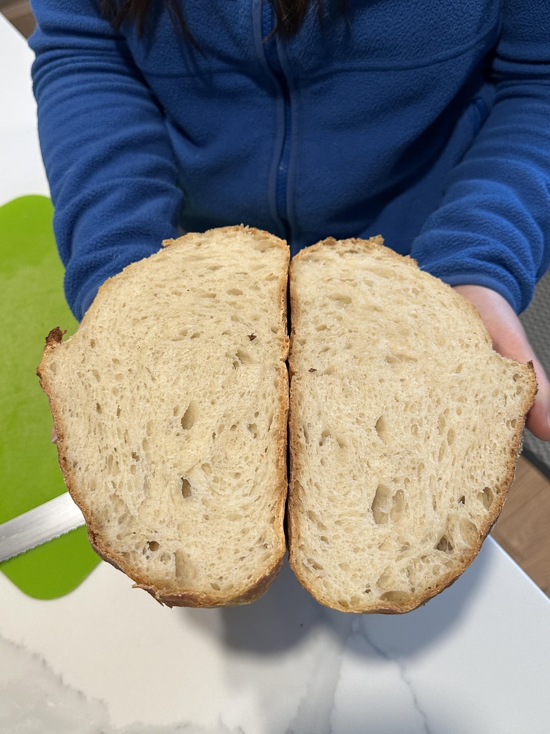 Really guessed myself since I started this loaf super late and it was in and out of the fridge a couple times as I tried to find time to get it into the oven 😂