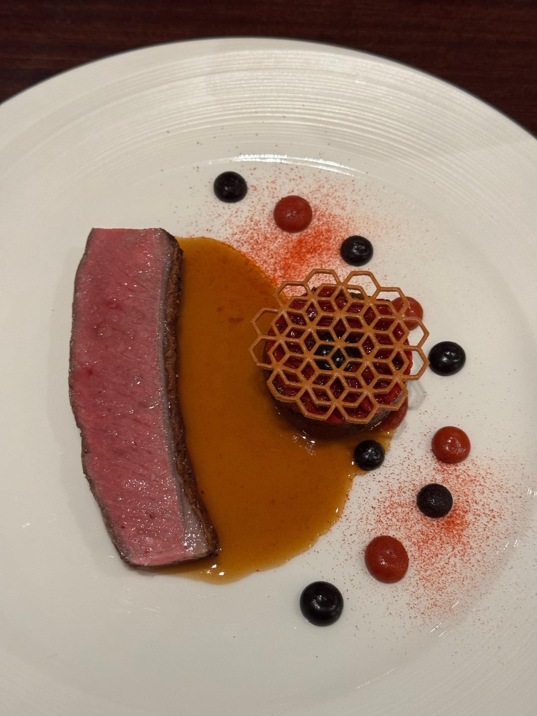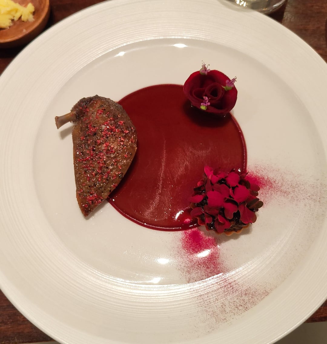 Squab pigeon with maitake mushroom tartlet and beetroot filled with a sweet preserved plum. Side of stuffed pigeon leg and tweal with pigeon liver. Such a gorgeous dish, the sweetness of the plum alongside the beetroot was so clever and the seasoning on the skin of the crown was absolutely fantastic.
