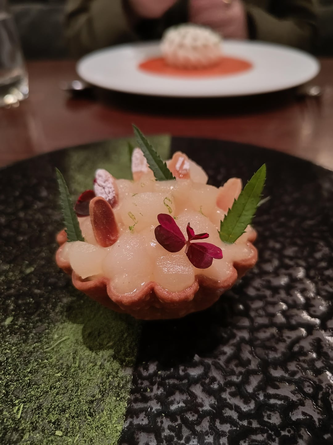 Course 1: I got the roasted scallop with confit sea leek and beurre noisette and my partner got the bluefin tuna ceviche with a yuzu and radish chilli continent. Both dishes came with a small tartlet to accompany the dish. The scallop was rich and creamy whilst the freshness and acidity of the tuna dish was a refreshing contrast.