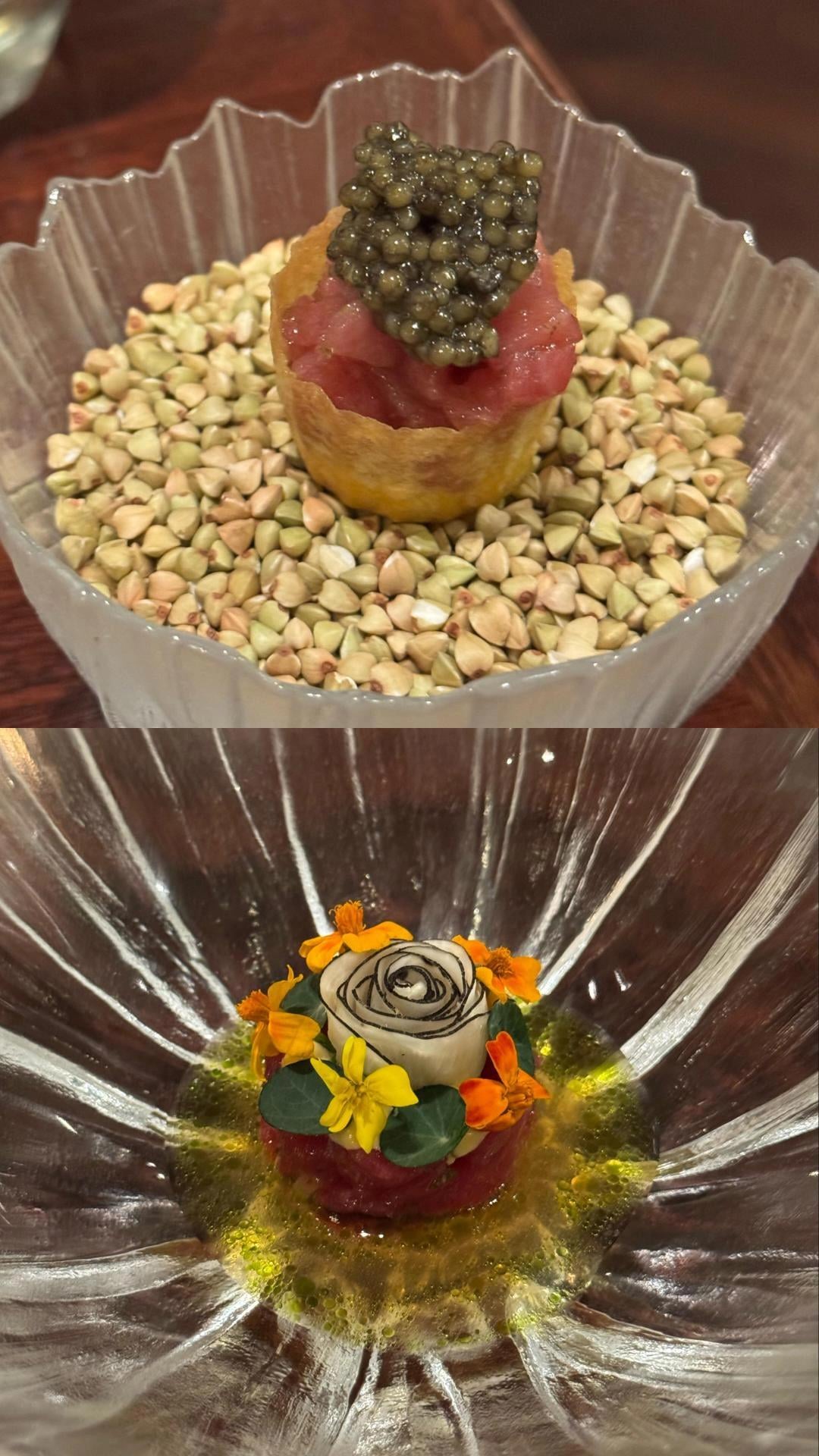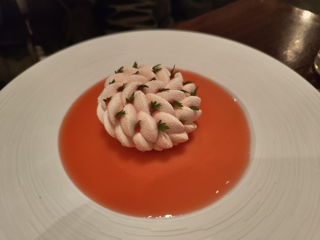 Michelin 2025 UK & Ireland awarded a few new 1 stars this year in London, Caractère being one of them. Ran by Emily Roux and Diego Ferrari, this small restaurant boasts an aura of grandeur whilst maintaining a modest modern feel to it. The dining area is nicely spaced out such that you are a comfortable distance from the other tables with gentle music just enough to drown out the silence.