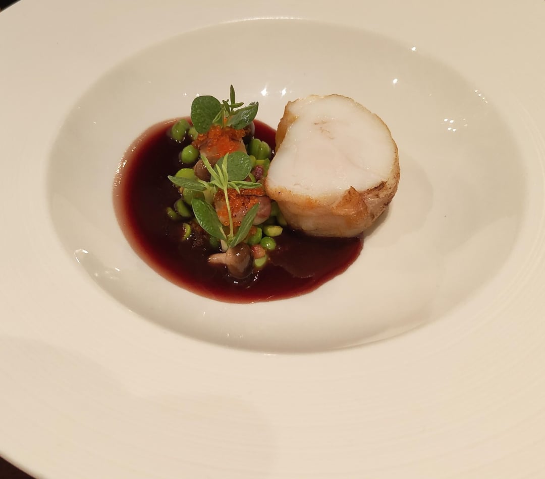 Course 3: Roasted monkfish with peas and bacon, was very surprised with how well the flavours came together on this one.