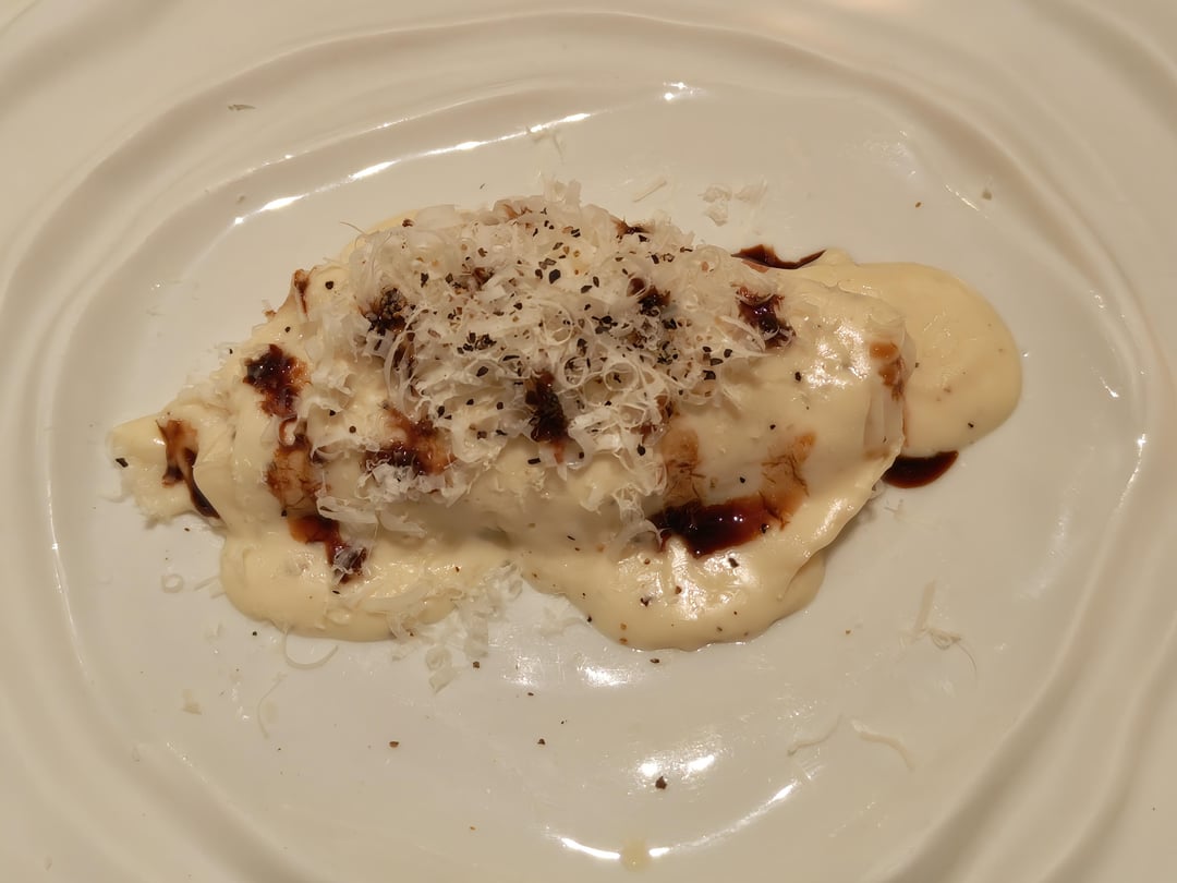 Their signature, celeriac “cacio e pepe” where the “pasta” is made by slicing celeriac long and thin and then cooking in a cheese sauce topped with aged parmesan and balsamic vinegar which has been aged for 20 years (or 12, I can't really remember tbh).