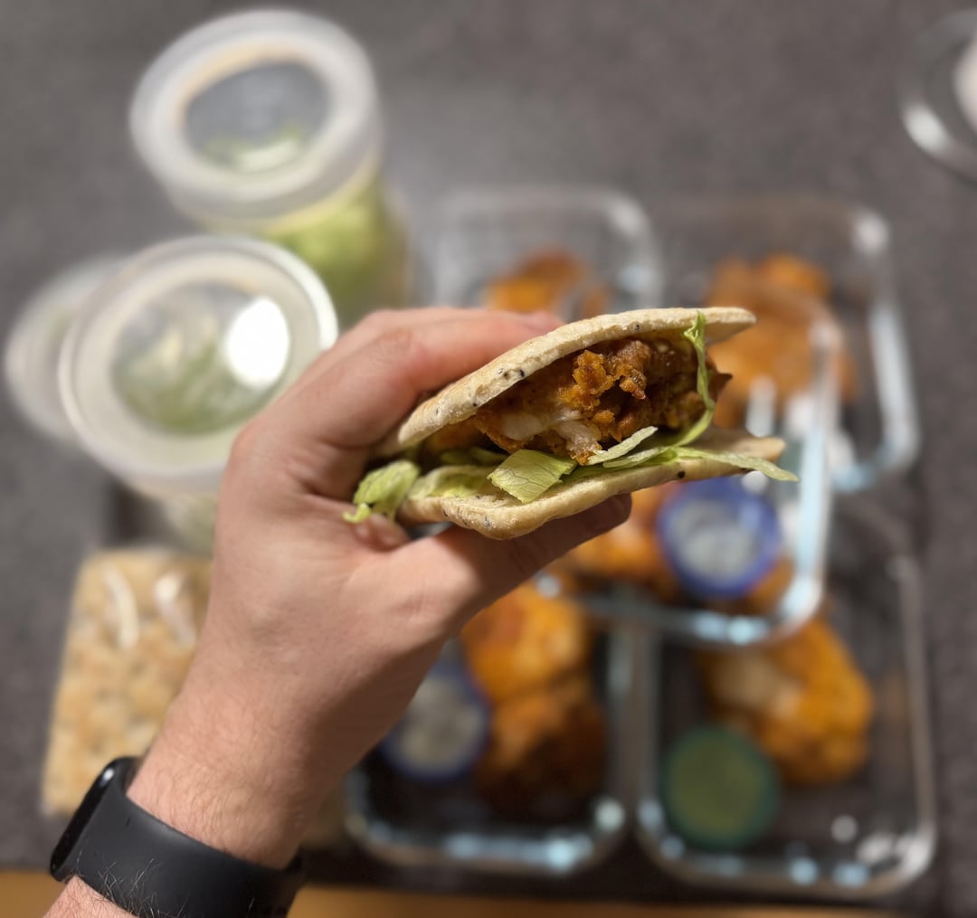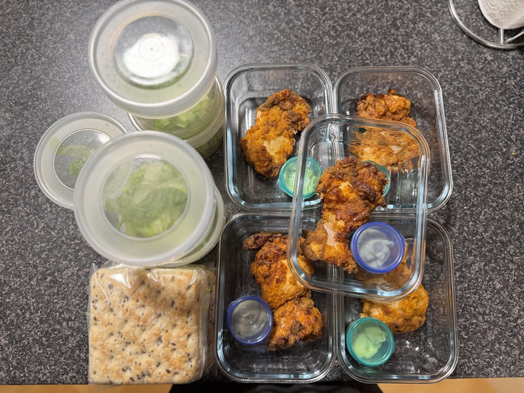Only change I made was to the chicken burgers, instead of using a burger bun I swapped it out for a multigrain sandwich thin which are 101 cals and lower carb. I’d normally build the burgers and store them but I wanted to try building them fresh when I’m about to eat them so everything is separated.