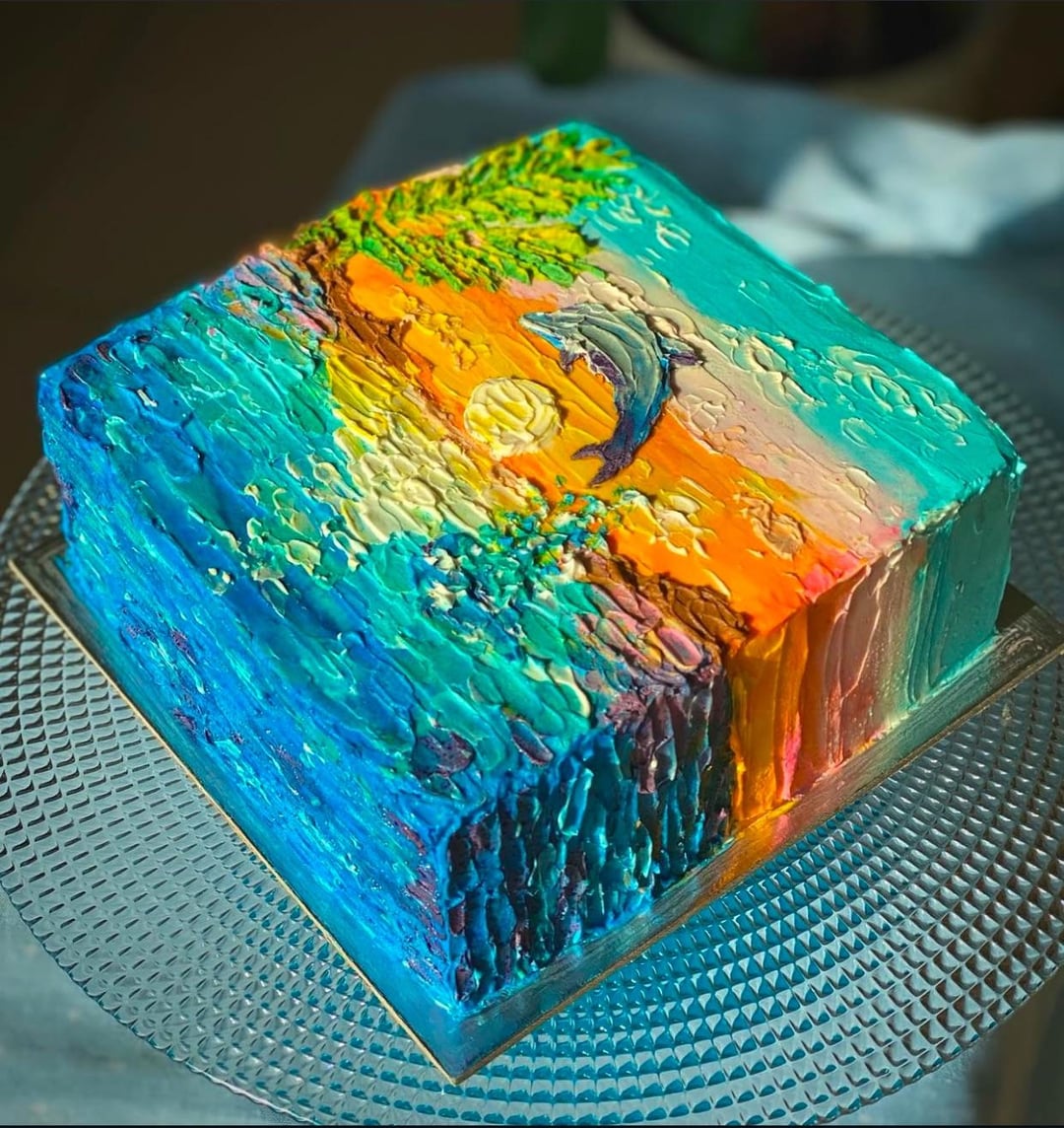 I made this in during covid (a very long time ago in hindsight) for Earth Day! Palette knife on meringue buttercream :)) by shawarmadaddy_ 25 Comments SlideItIn100 1 year ago I love it! sweetsbaker10 1 year ago Lovely enbloom 1 year ago Masterpiece! glitter_n_lace 1 year ago What the?! Who are you??? THIS IS AMAZING!!! starry2night_22 1 year ago Very cute! I especially love the palm tree fattestfupa42069 1 year ago You are so ridiculously talented it makes me siiick. This is BEAUTIFUL π Can’t wait to see more of your work! Whole_Abrocoma9105 1 year ago That is absolutely gorgeous Minute_Bumblebee_726 1 year ago Absolutely gorgeous. I call the dolphin piece! No_Stage_6158 1 year ago Itβs beautiful!!! Particular-Choice896 1 year ago I love it. Mustβve been hard to tear into keridc 1 year ago You are wildly talented OP! This is a work of Art! No_Palpitation_7705 1 year ago Dreamcake Phoyomaster 1 year ago Super cool. It’s like a painting that I can eat! gdfingperfect 1 year ago Breathtaking stilettopanda 1 year ago This is gorgeous! The only way I can make a cake look good is to treat icing like paint. It’s such a fun effect! Spacelady1953 1 year ago A beautiful work of art. jorban100 1 year ago So talented!! Canβt wait for the next one π Noirettes 1 year ago ARTTTTTTT okaspenn 1 year ago YOU ARE SO TALENTED, THIS IS STUNNING!!! Punch01coral 1 year ago This is incredible ππ Burnt_and_Blistered 1 year ago Gorgeous! UnhappyBrief6227 1 year ago Wowwww ππ Velouria910 1 year ago Wow! It’s a gorgeous work of art! y_a_t_ 1 year ago Oh my God! This is the most beautiful thing ever ππππ―π―π― twirlybird11 1 year ago WOW! Whatever you charge for cakes, it isn’t enough! You have some incredibly lucky clients/friends, and thank you for sharing these. β€Write A CommentYou must be logged in to post a comment.
