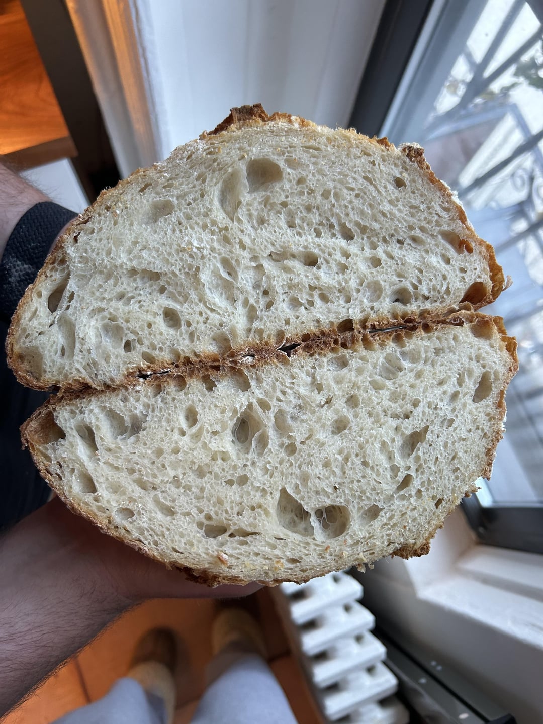 Used Ken Forkishโs Saturday white bread recipe. Was expecting failure and couldnโt be happier, am hooked now! by phineas_gages_rod 2 Comments Bubblehead616619 11 months ago Nice job! Barrels_of_Corn 11 months ago How much of the total flour did you preferment? Looks very nice!๐Write A CommentYou must be logged in to post a comment.