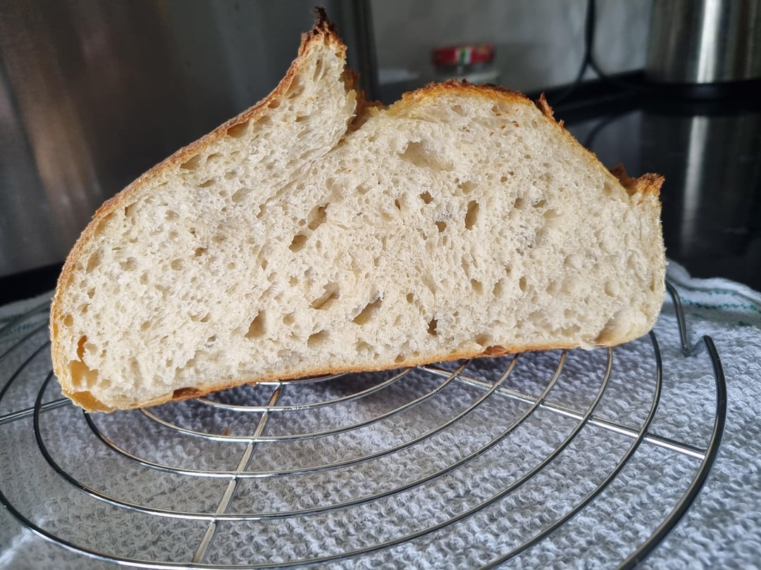Recipe for this one: 148 g stiff starter (60% hydration), 500 g flour, 330 g water, 11 g salt – total hydration 65%