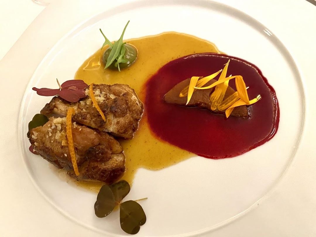 The John Dory dish was probably one of my favorites prior to dessert. Fish was beautifully cooked with a surprising combination of kiwi and clams. I really liked the salinity and acidity along with the sea asparagus. Our final savory dish was sweetbreads with an orange and beet sauce. The sweetbreads were perfectly crispy on the outside and tender on the inside. It came with a sliver of tongue on the side (not pictured) that was decadently fatty. We were getting pretty full and did not have the cheese, but it did look excellent from across the room.