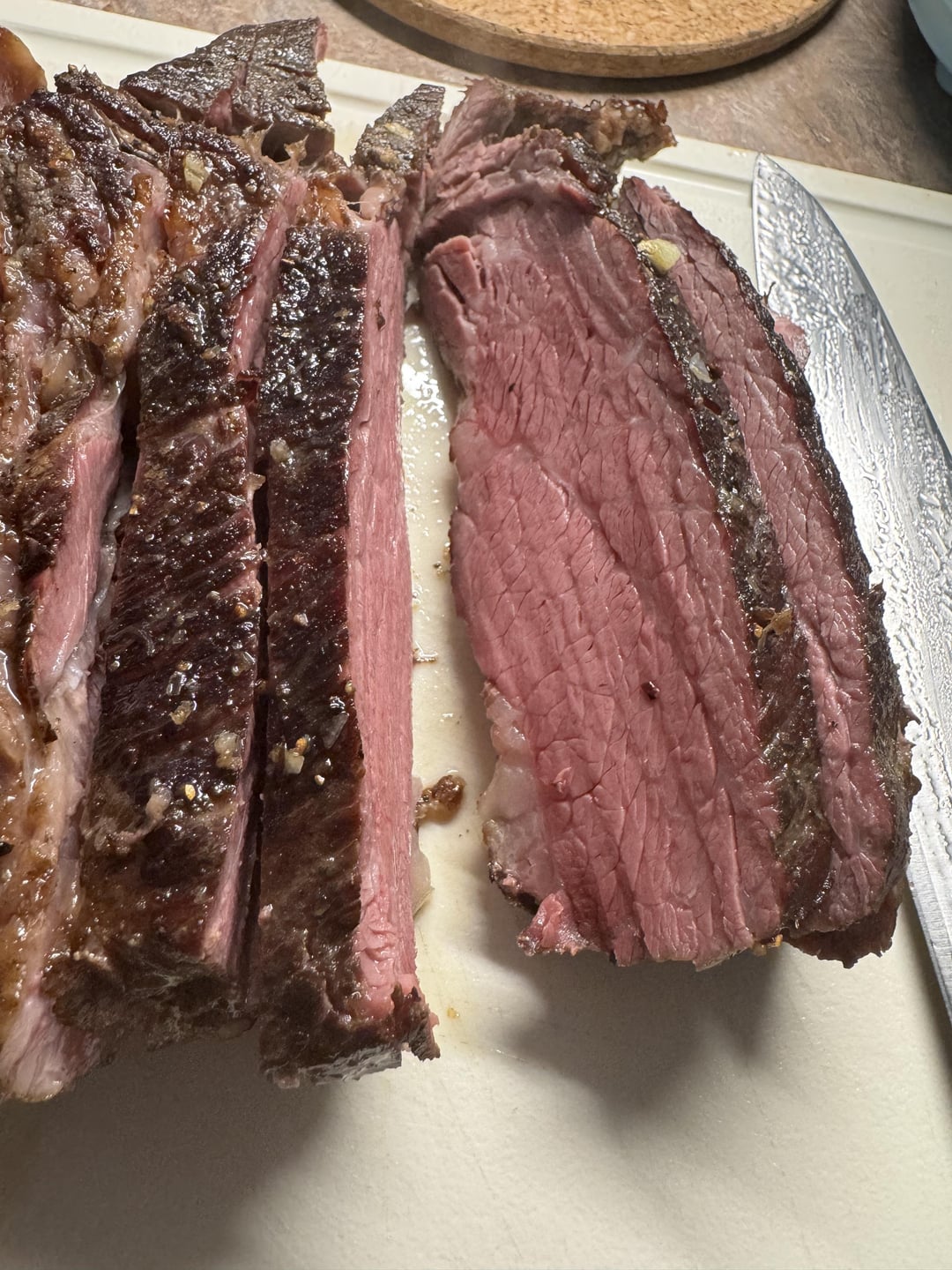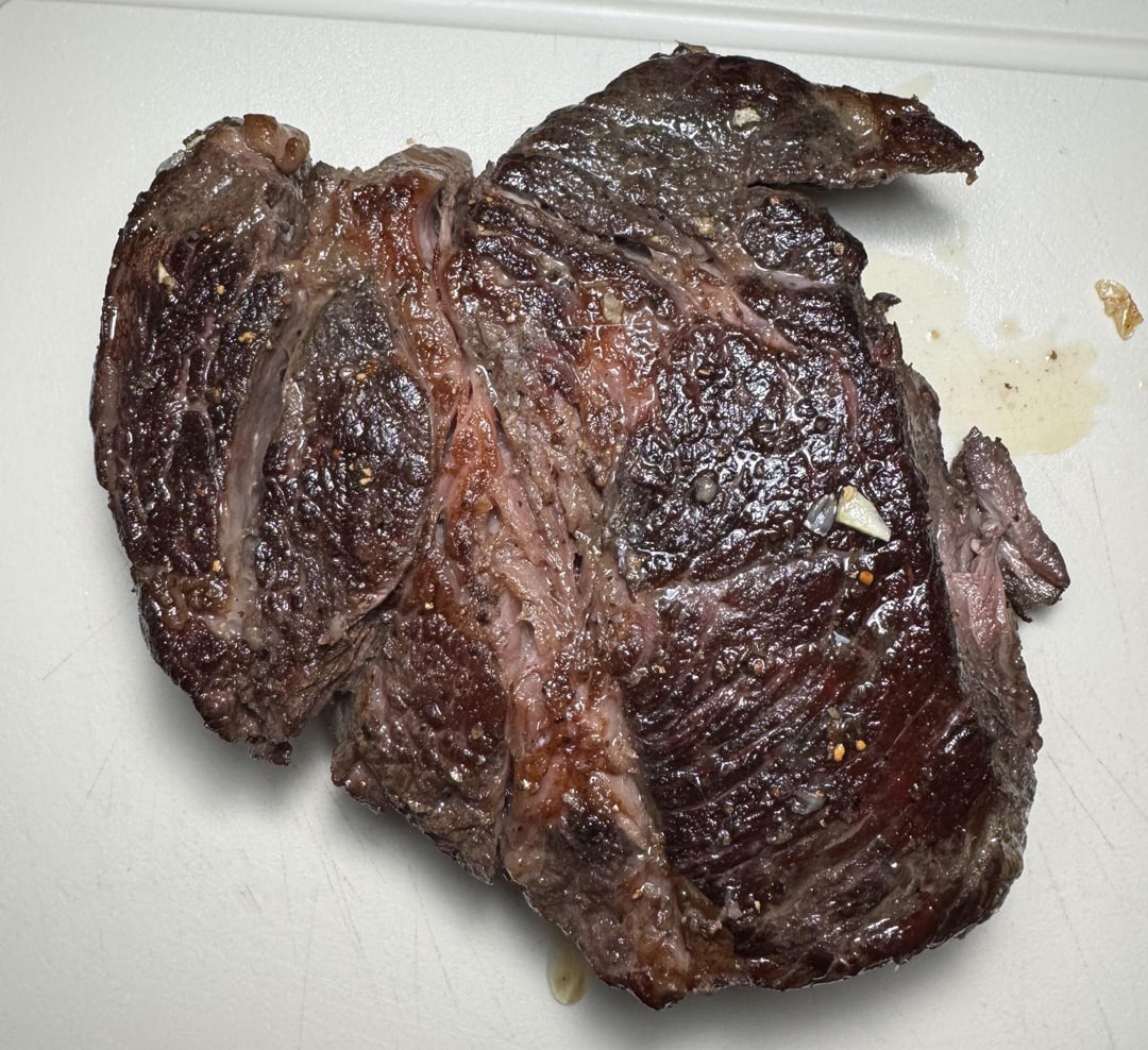 137 for 24hr with rosemary and smoked sea salt. Pat dry and salted, cool in fridge for 10min. Preheated nonstick caraway pan to 500 in oven and seared in avocado oil. Reduced heat and finished with butter, garlic, and rosemary. Finally, I put the meat in my mouth.