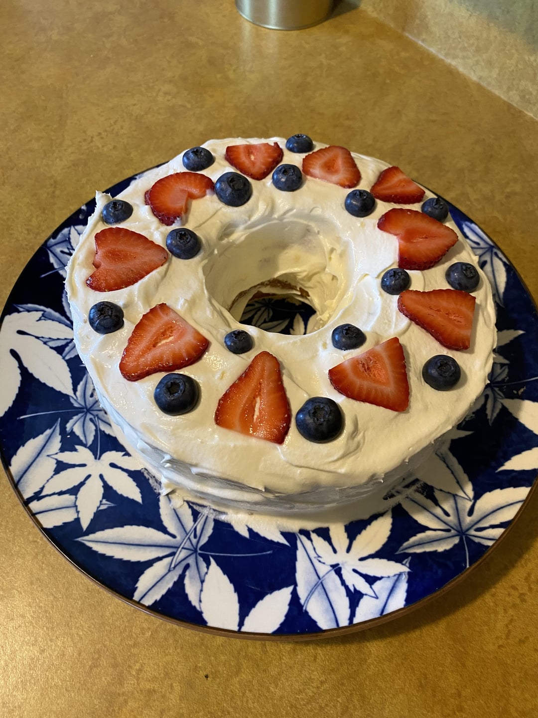 Just a simple Angel food cake frosted with cool whip and topped with berries 💙 makes me miss summer.