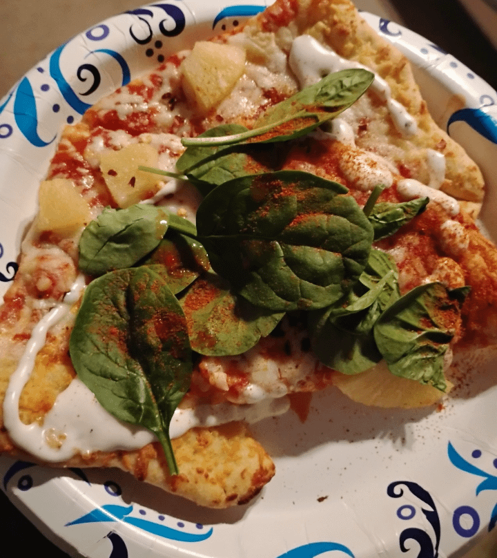 I think the crime is in the execution. I’m good with pineapple on pizza and ranch as a dip….raw spinach on top is weird (and *NOT* a suitable substitute for basil) though I would eat it on the right pizza. Why would you remove pepperoni? The whole thing looks under-done to me.