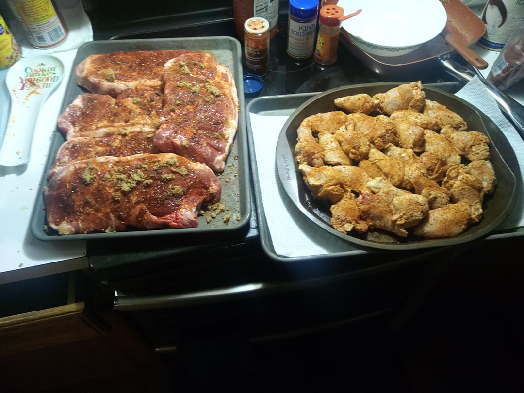 I prepared some pork butt steaks and chicken wings for dinner tonight. I'll post up some pics when finished