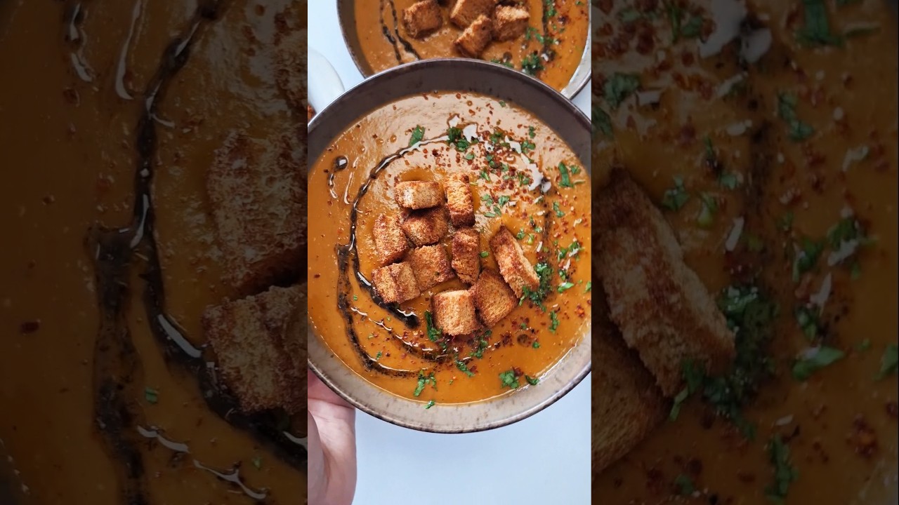 Cover and simmer for 15 minutes until soft. Blend until smooth, adjusting consistency with more broth if needed. Taste, adjust seasoning, and serve hot with croutons, parsley, chili flakes, mint or chili oil, and lemon juice.