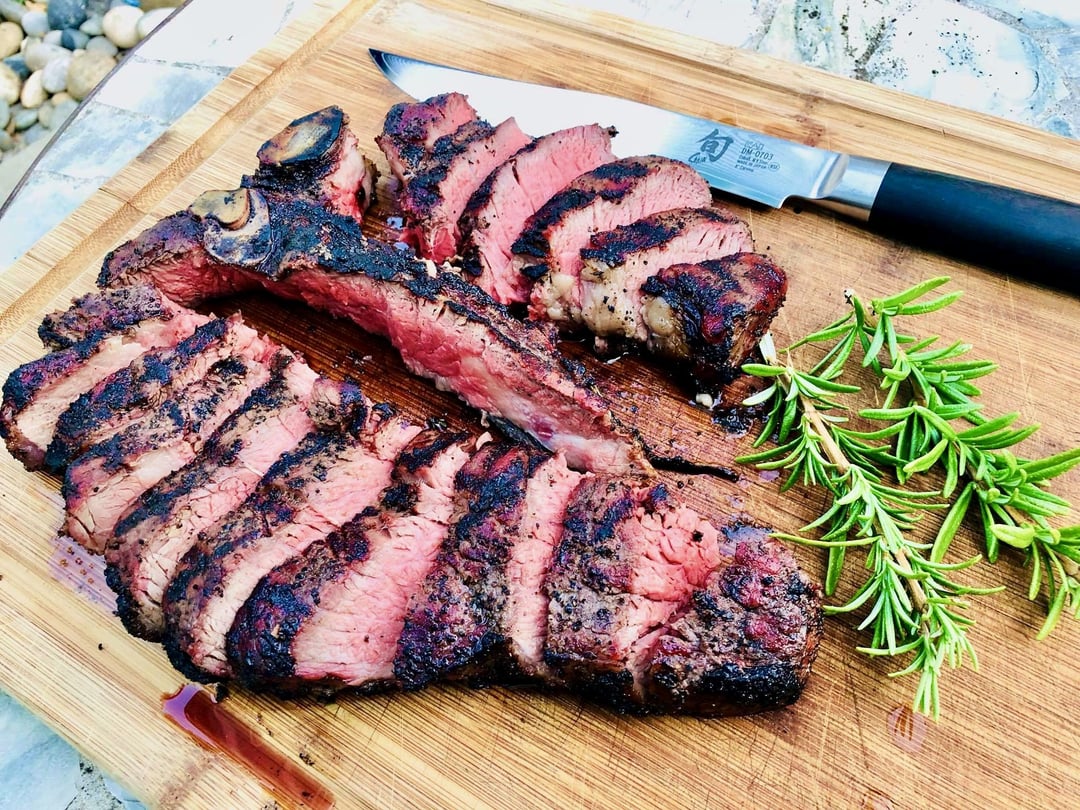 Cook on pellet grill, sear on ripping hot cast iron, rest on salt block. Profit