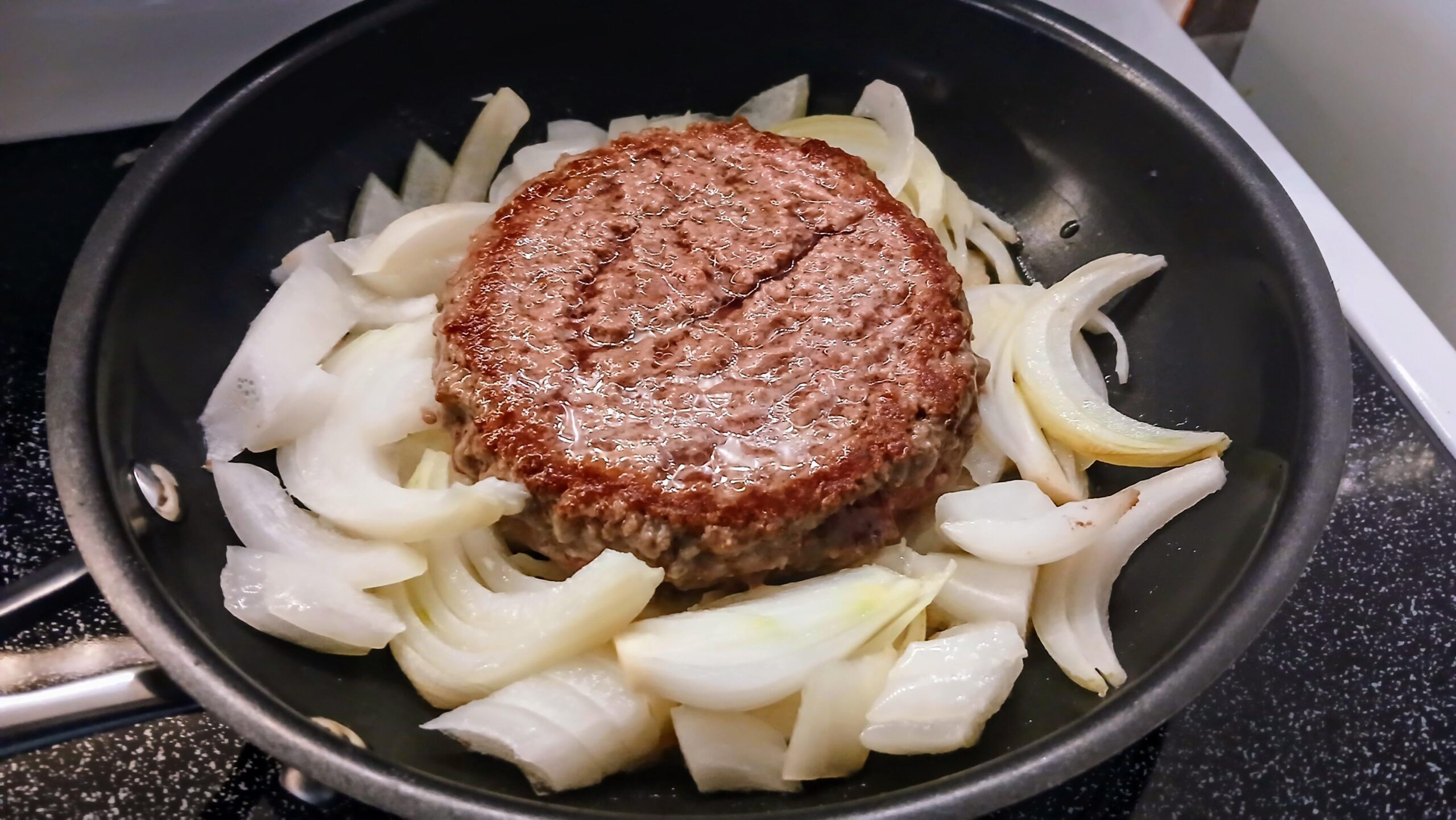 YUM! next time try slicing the onions thinner and smashing the patty into them once they’re a bit more cooked down. it’s delicious 🤤