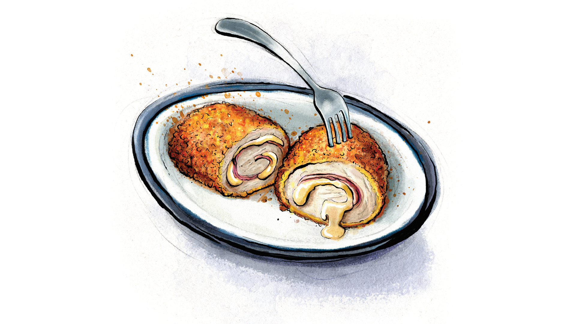 The result is neat little parcels of golden-brown crunchy breadcrumbs encasing chicken, cheese and ham