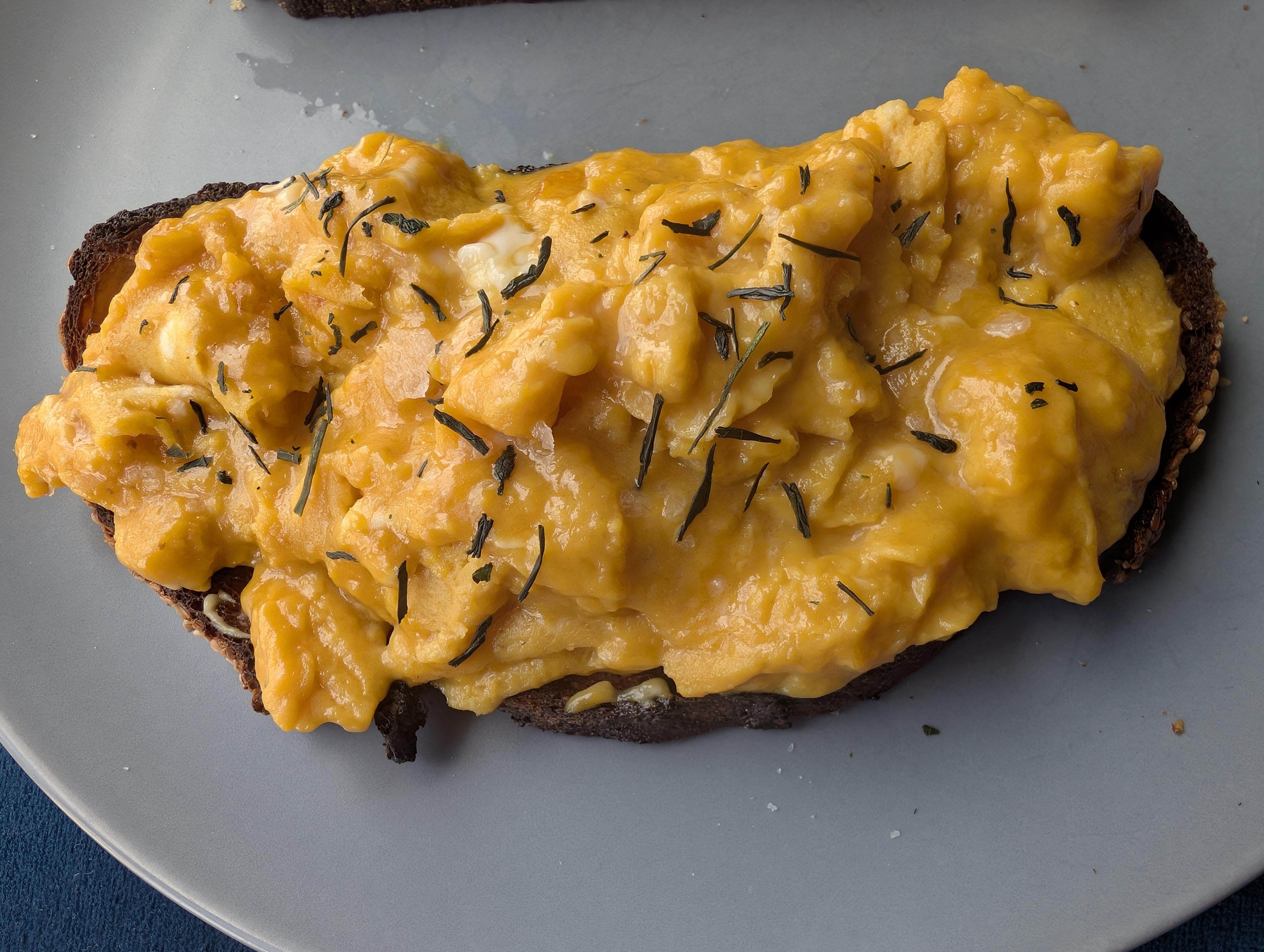 3 eggs, garlic, ginger, soy sauce, rice wine vinegar, sugar and sesame oil. Soft scramble. Topped with nori. Excuse the horrendous plating.by Competitive-Fly6472 Write A CommentYou must be logged in to post a comment.