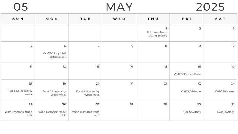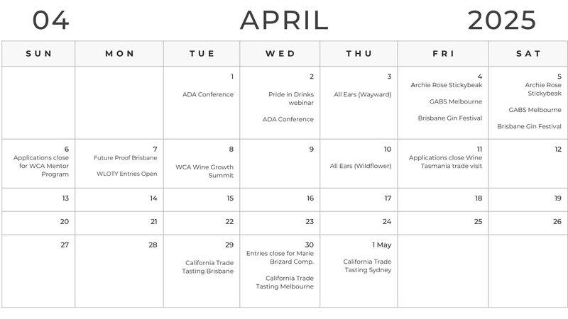 Australia’s drinks industry calendar: