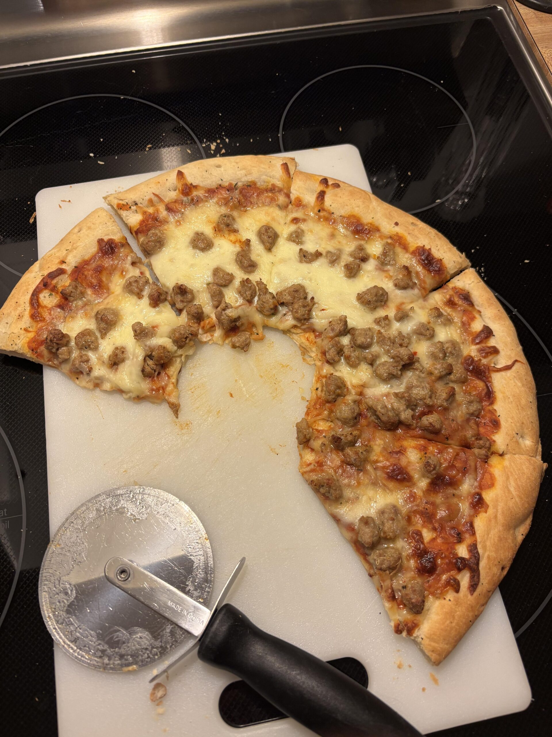 I mean, at least he used the pizza cutter and not his hands or mouth.