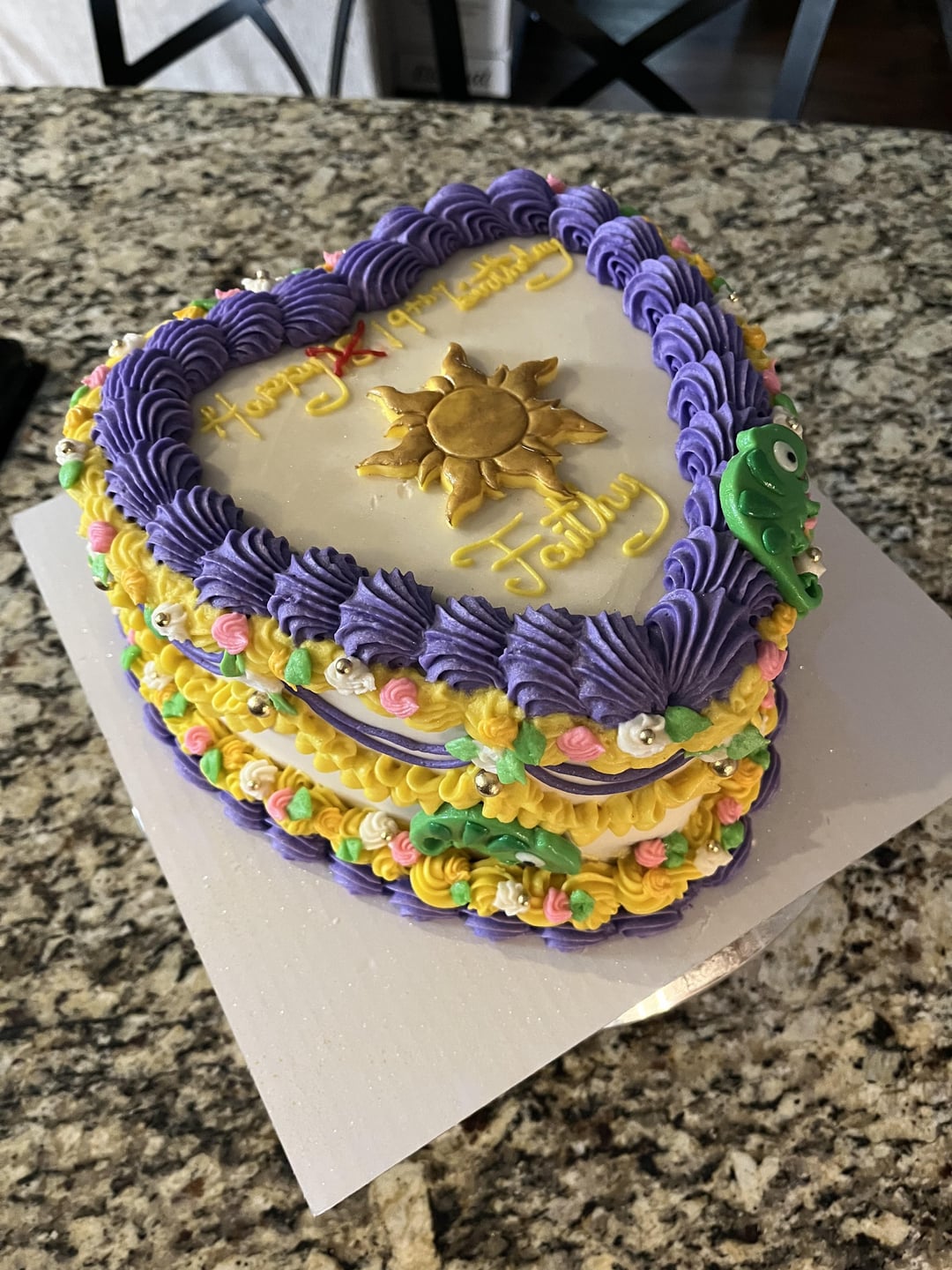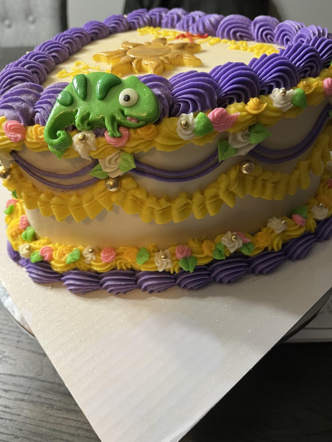 As some one who loves the vintage piping cakes and also has one year old that loves tangled I can safely say this cake is awesome! Like really, well done! I may try something similar for when heβs 2 if he still loves it so much haha.
