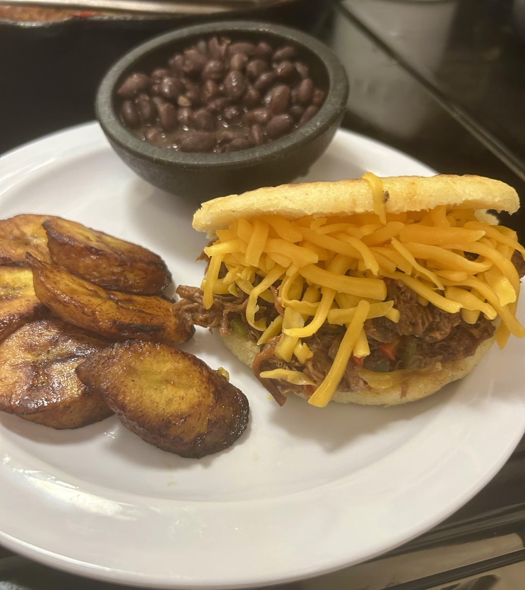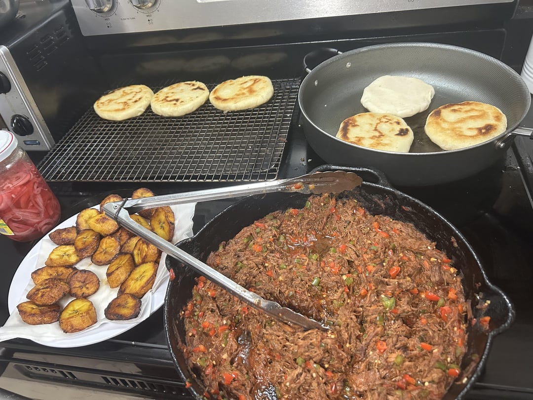Wanted to try something new so l made Venezuelan arepas. Made carne mechada for arepas pelúa then chicken salad for Reina pepiada. Then also made fried plantains as well as guasacaca and salsa Rosada for dipping. Was a process but came out delicious