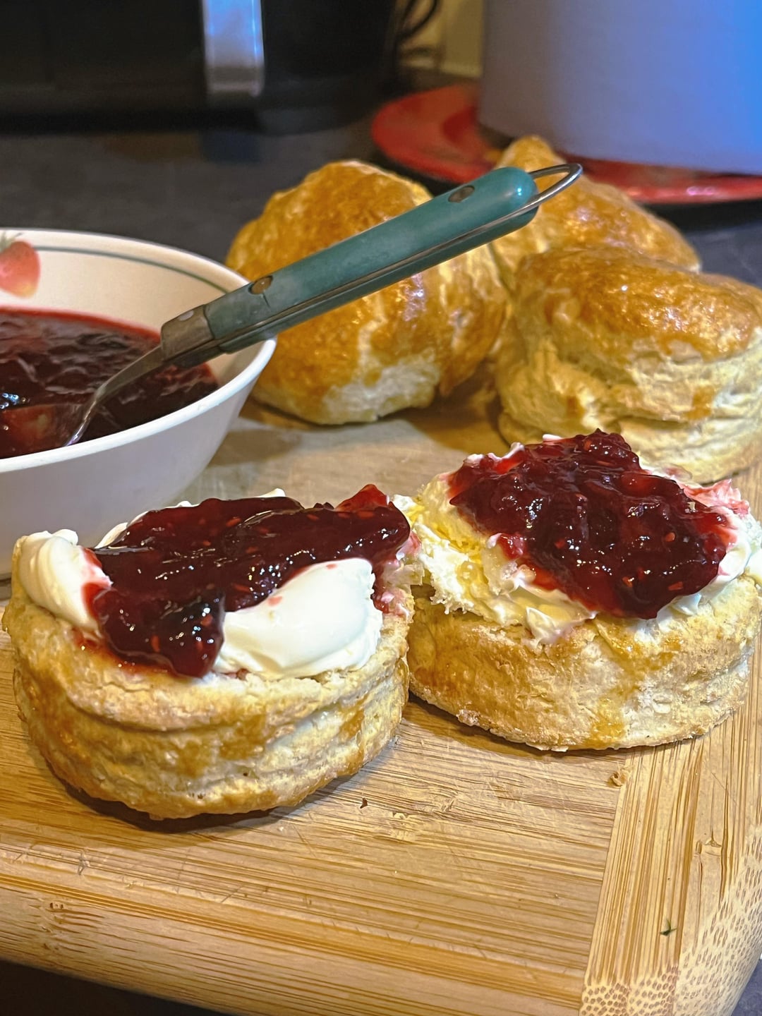 Made some buttermilk scones, topped with clotted cream & summer fruit jam π