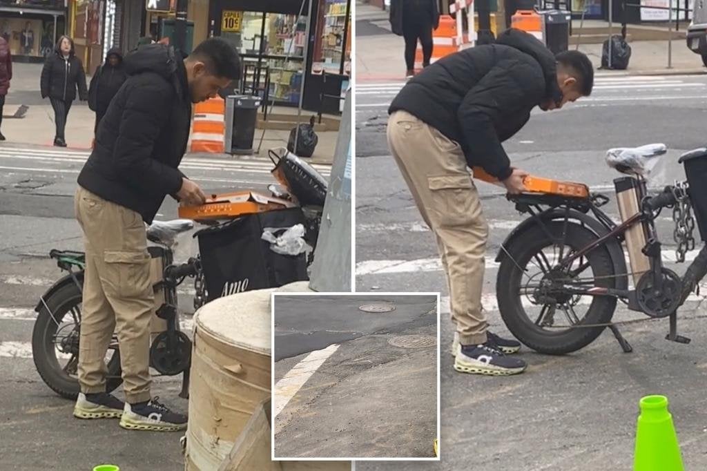 Exclusive | NYC deliveryman lets pizza hit the pavement, puts it back in box