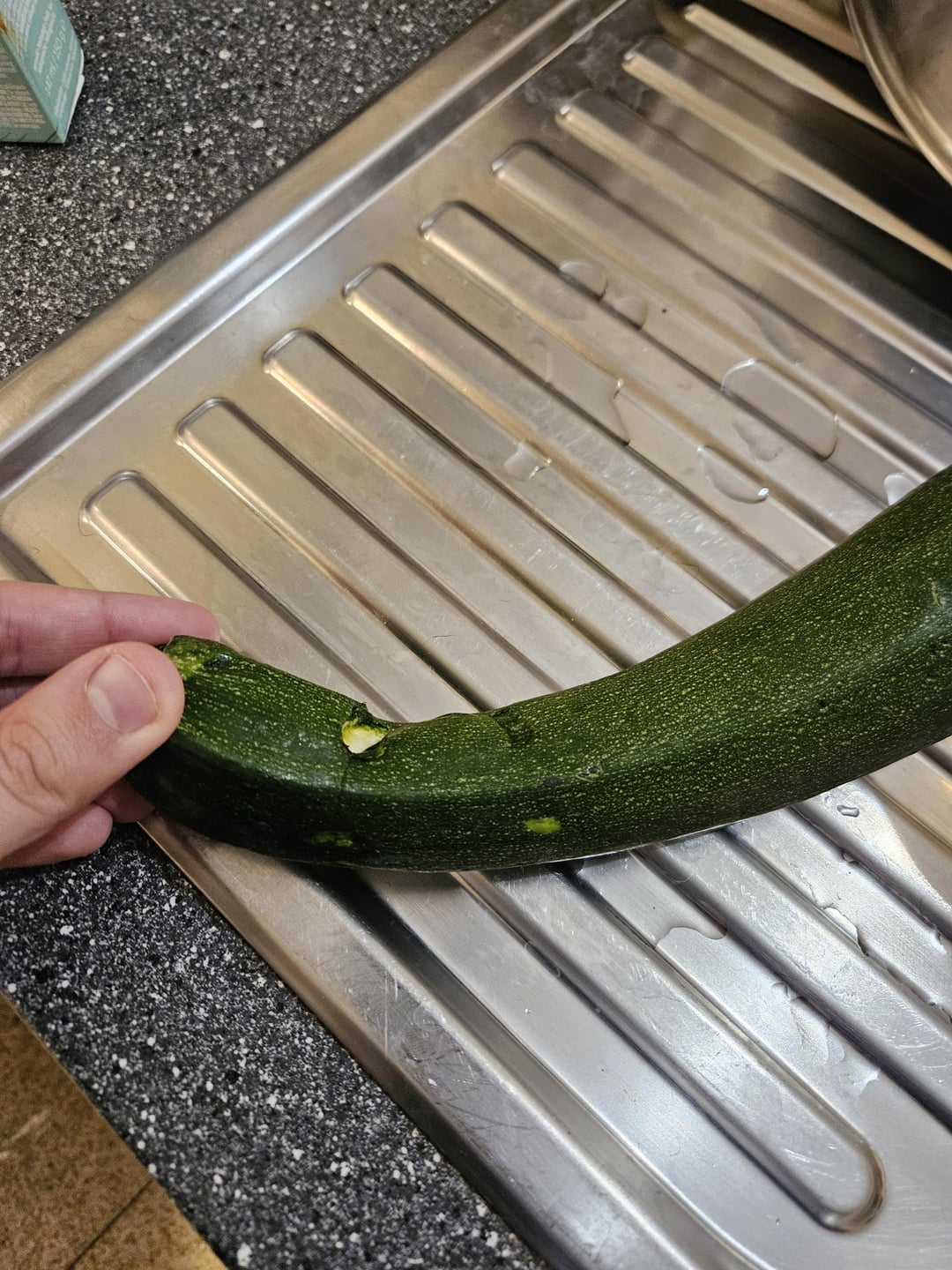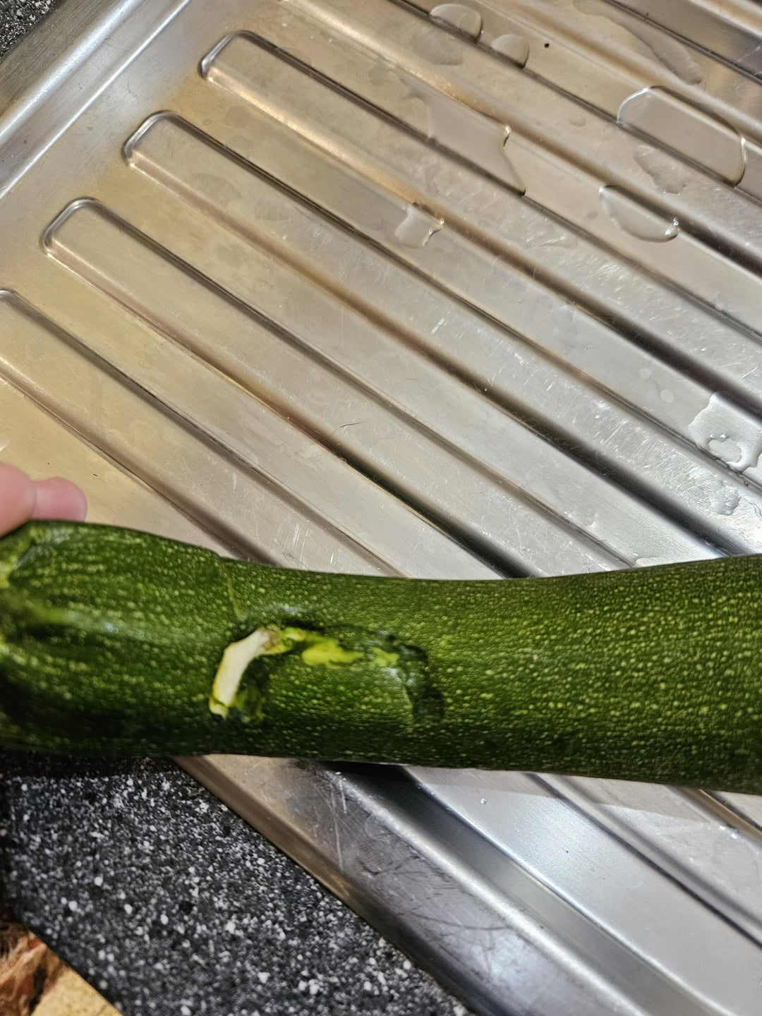 It has to do with how it’s cultivated or how it was handled during shipping from farm to Distribution Center. It’s health risk would be relatively low since it’s essentially just a cut vegetable that was exposed to the air and kept refrigerated. Just like if you cut some zucchini and left in the fridge for a few days since the max time between cultivation and arrival at the DC is about 1-3 days give or take, then add more time for shipping to your home.