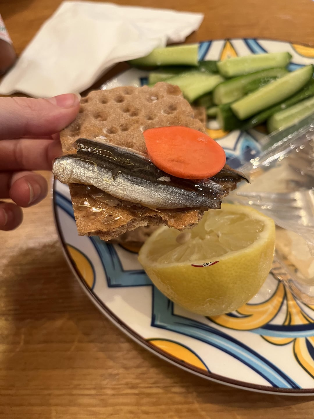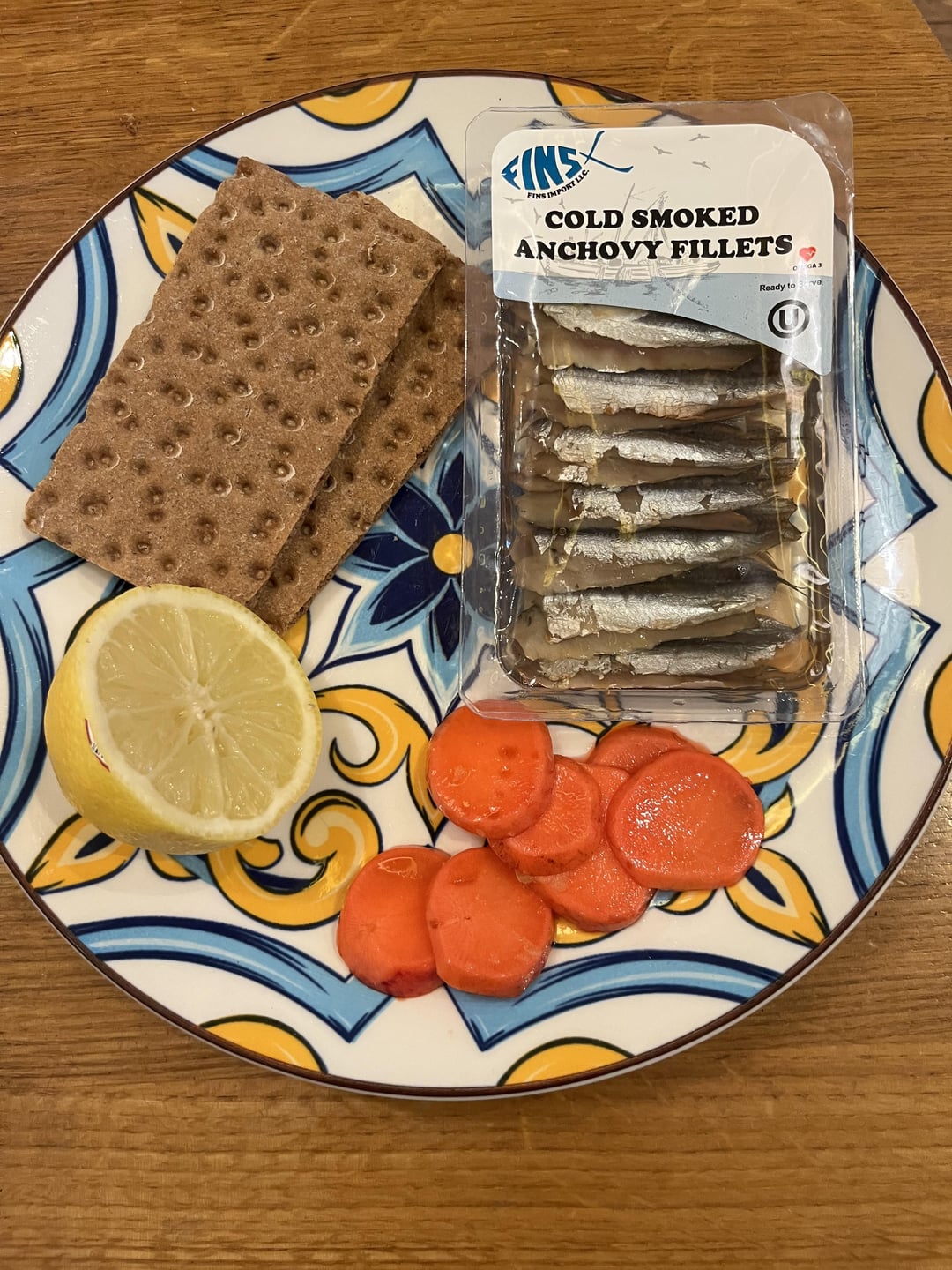 I had them with crisp bread crackers and some veg and lemon.