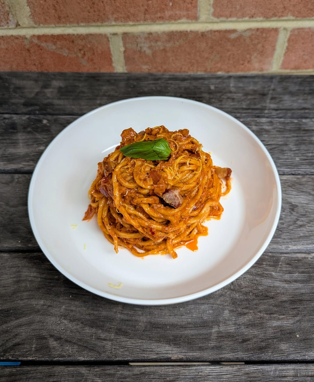 This was very tasty, almost similar to an amatriciana with 'nduja adder but I am aware this is not amatriciana so I am not calling that, it's just for perspective.