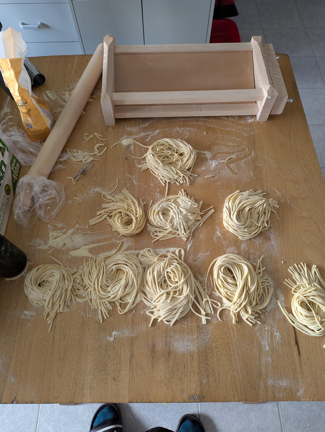 This is looking great! How did you keep your pasta nests from not sticking? I made a bunch last night for a dinner and added plenty of semolina while rolling and cutting the pasta. However, they all stuck under when nested and resting before it was time to cook them (1h later). My dough was made with eggs and evoo.