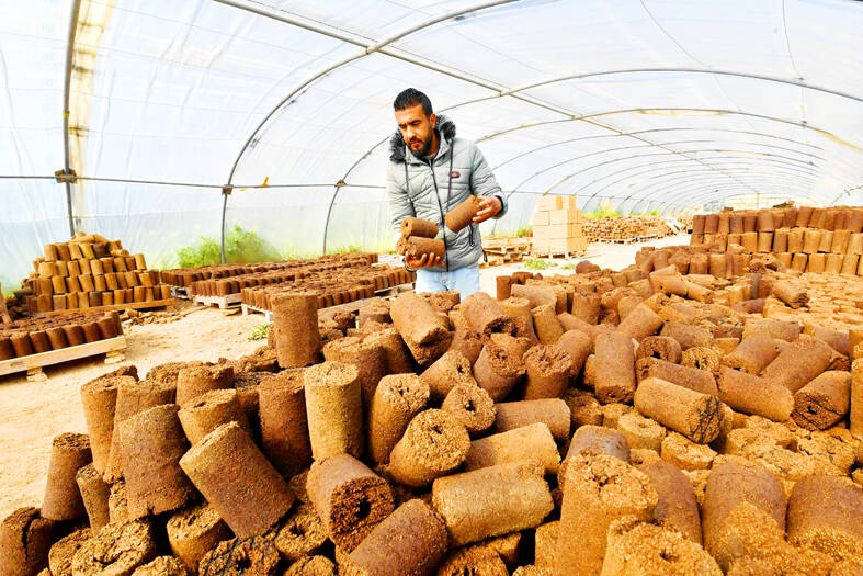 The material is then compacted into cylindrical briquettes and left to dry for a month under the sun and in greenhouses before its packaging and sale.