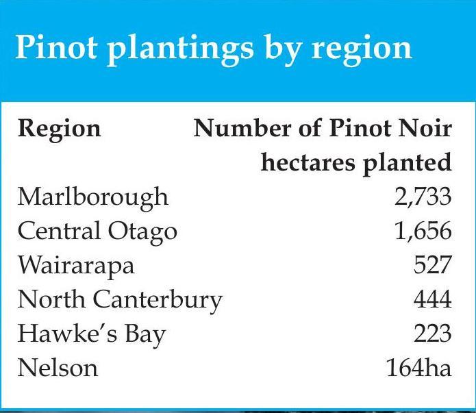-Pinot Noir accounts for 5,678ha (14%) of New Zealand’s total vineyard area, making it the country’s second most planted grape after Sauvignon Blanc.