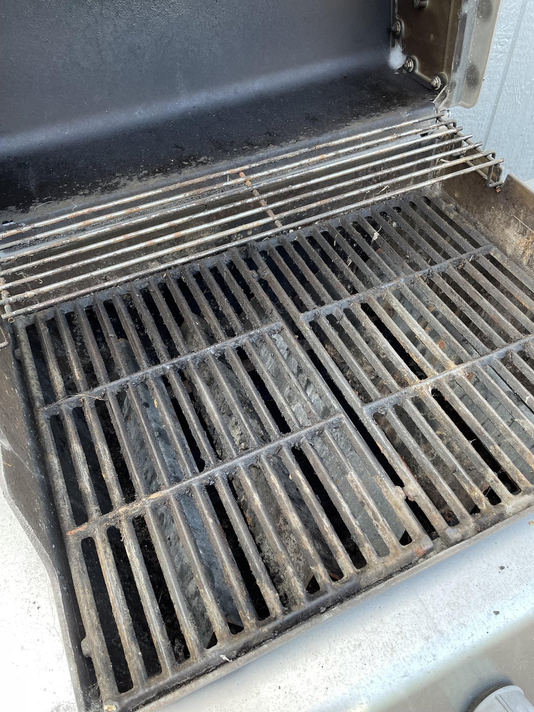 I bought some grill cleaner and a steel wool brush. Dunno if that’ll be enough to clean this..