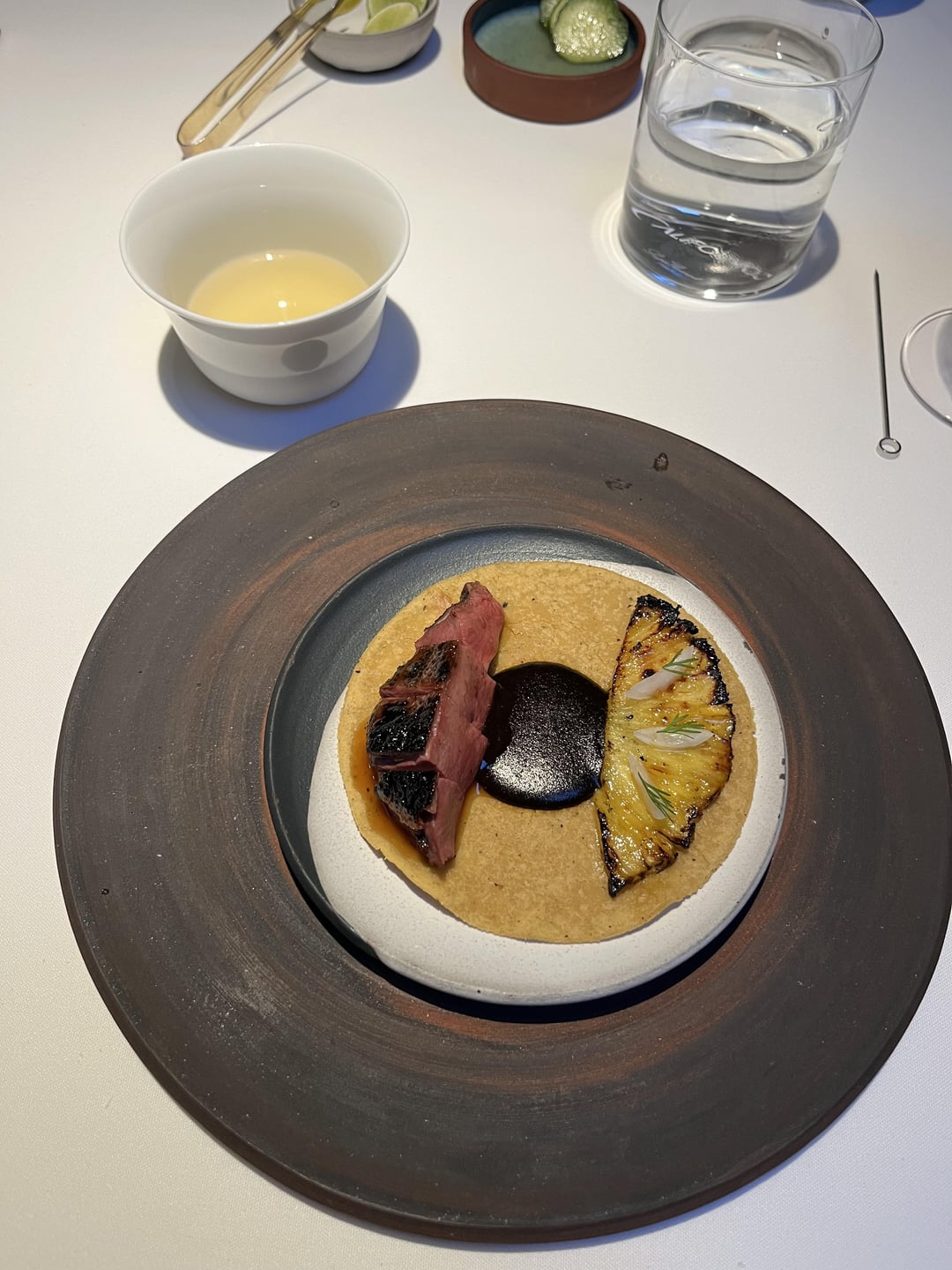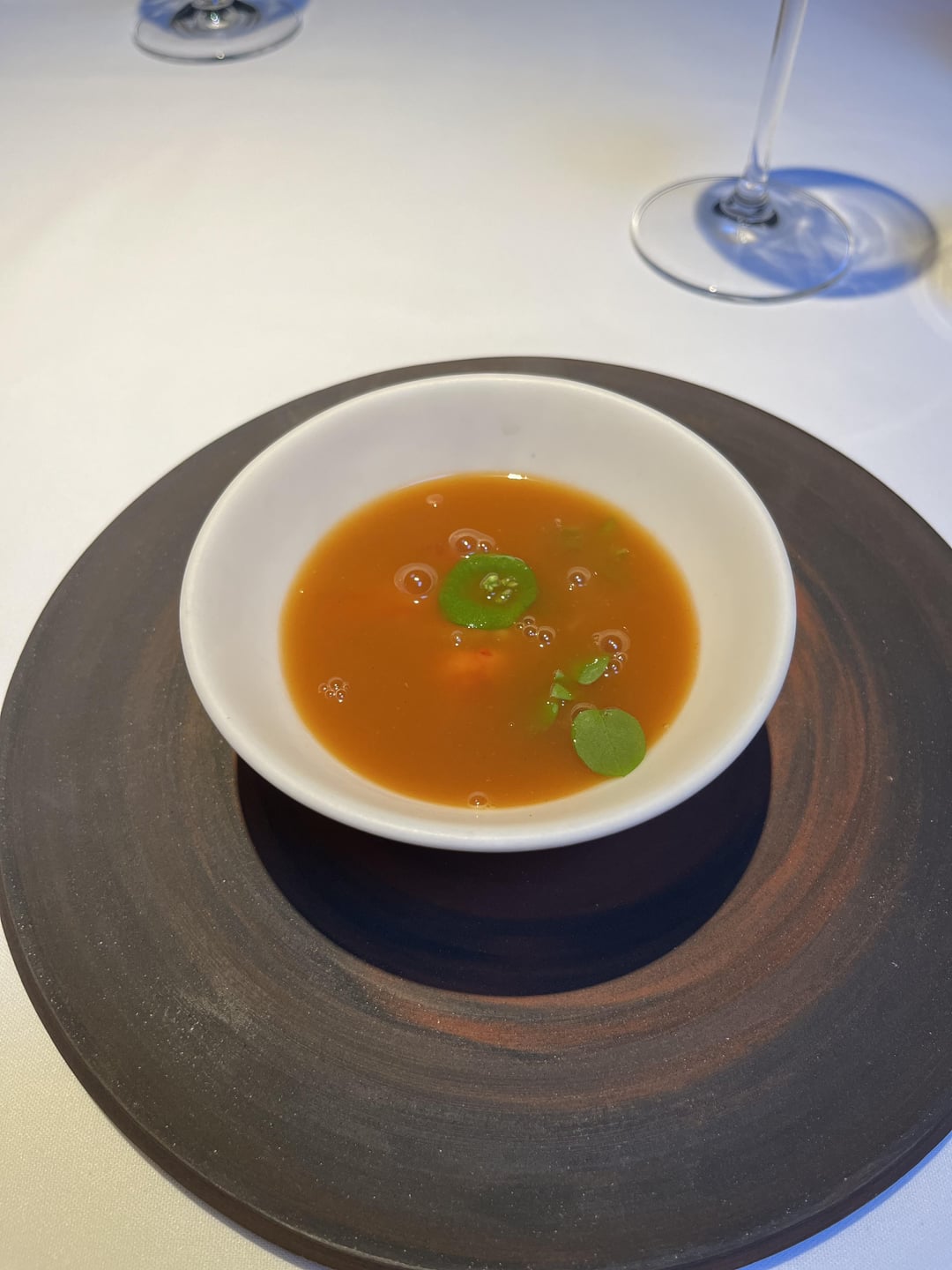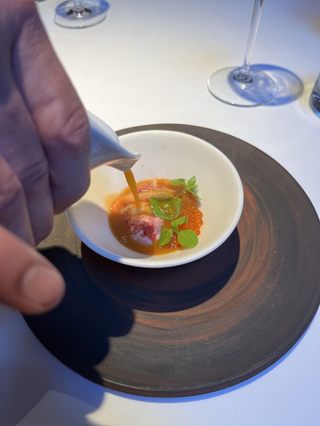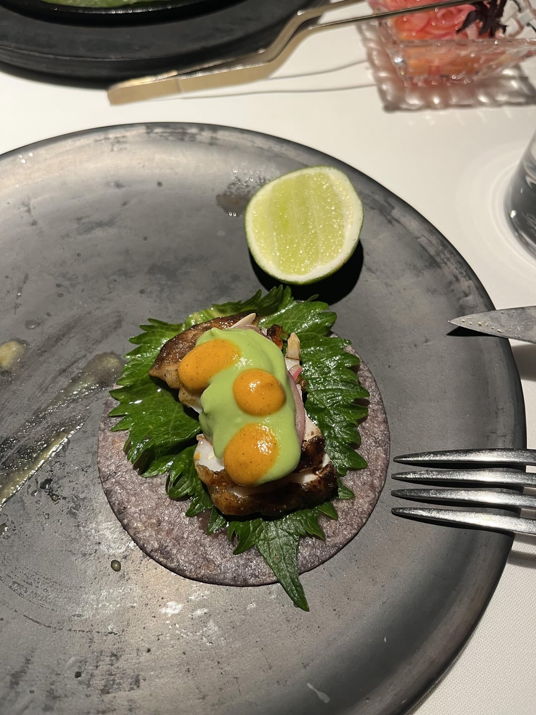 – The lobster soup, the final build-your-own-taco fish course, and all desserts were outstanding. Especially the lobster soup, and the impossibly creamy and smooth salsas and taco accompaniments