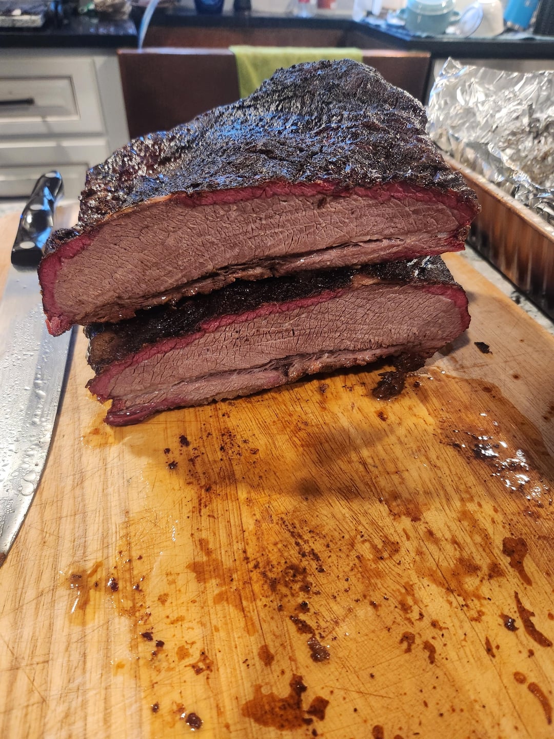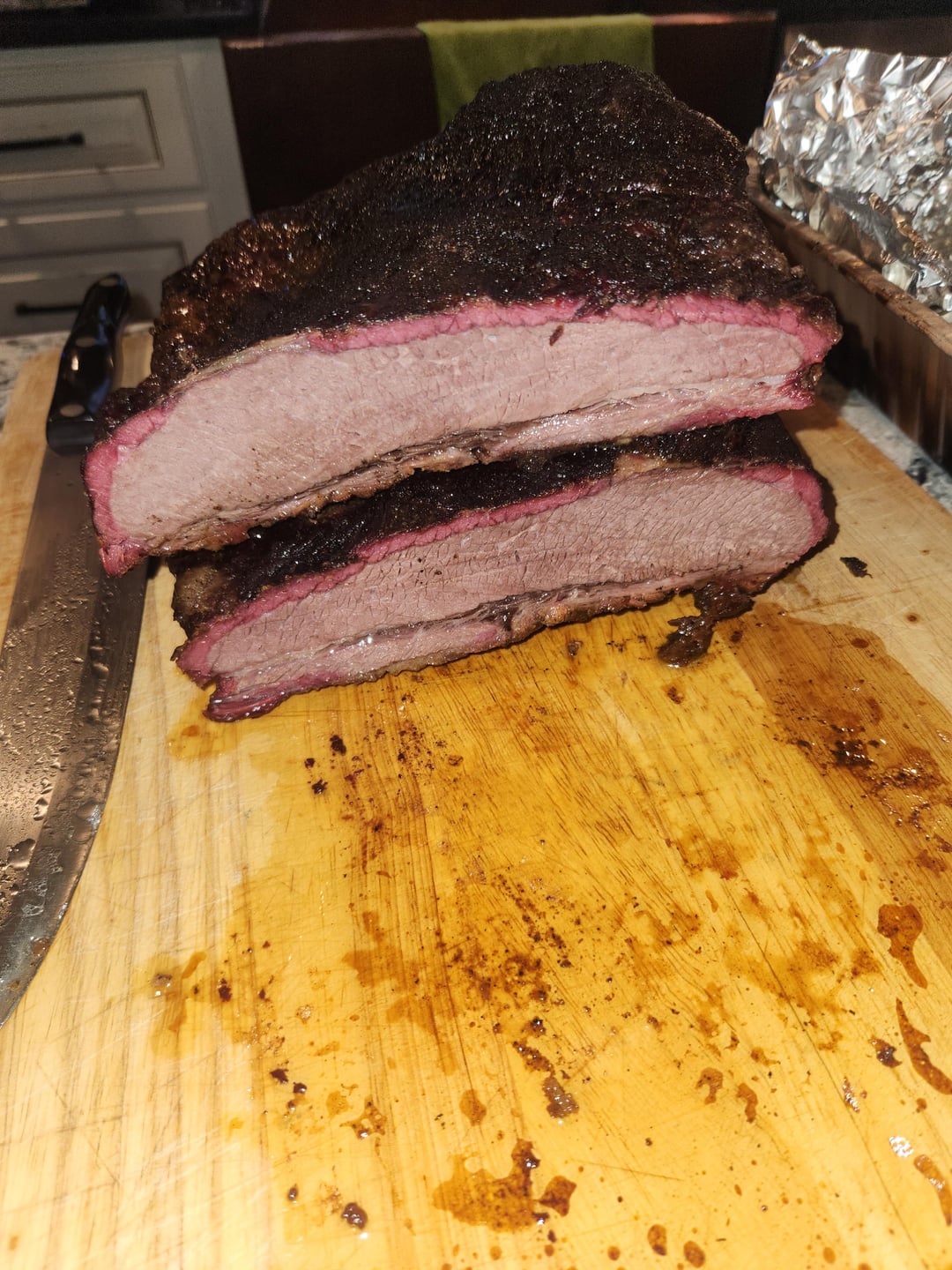Smoke ring and bark look good. How much fat did you leave on top?