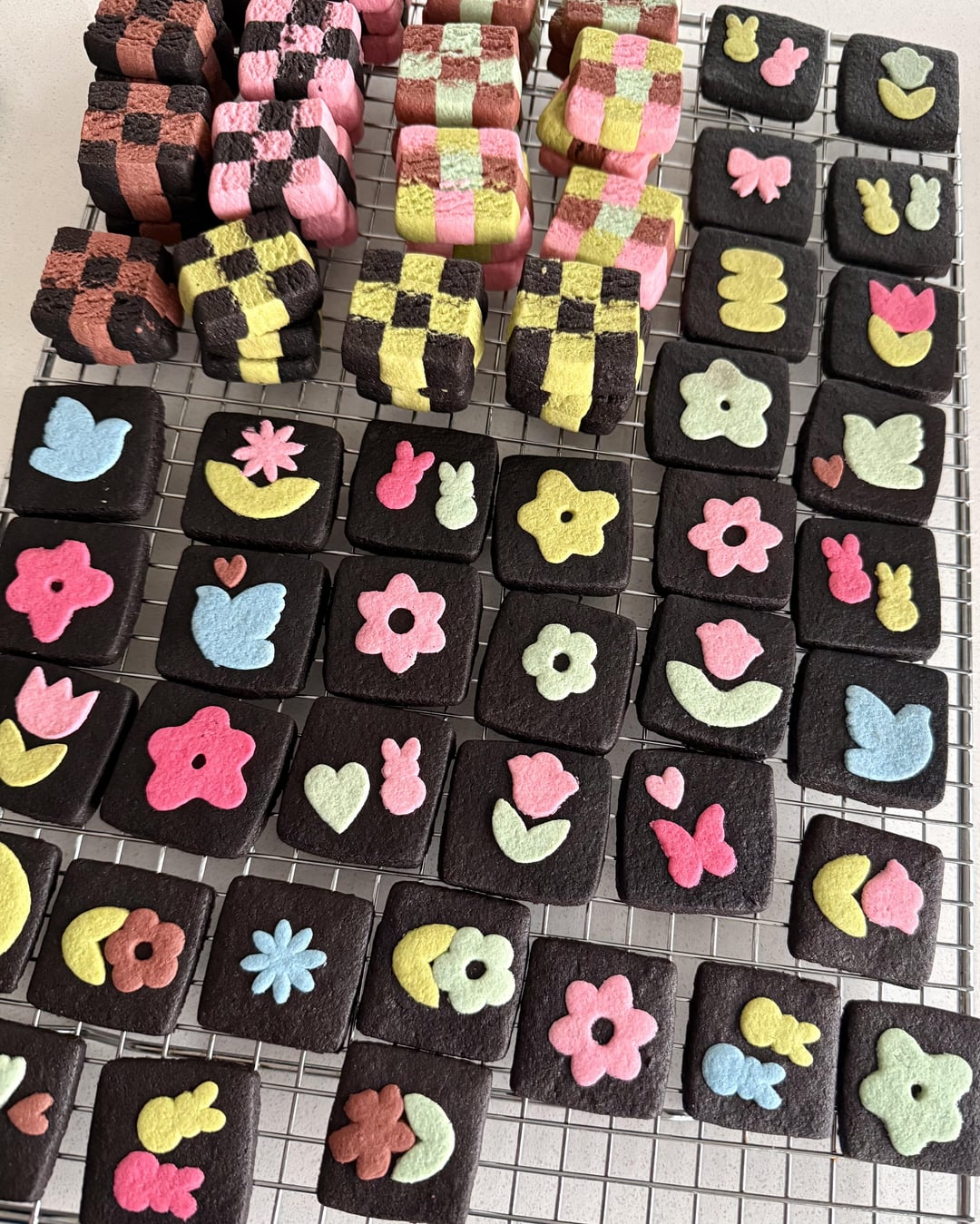 if anyone knows why the checkers look like that pls lmk ๐Ÿ˜ฉ im thinking itโ€™s dry dough and/or not chilling long enough before slicing and/or dull knife??