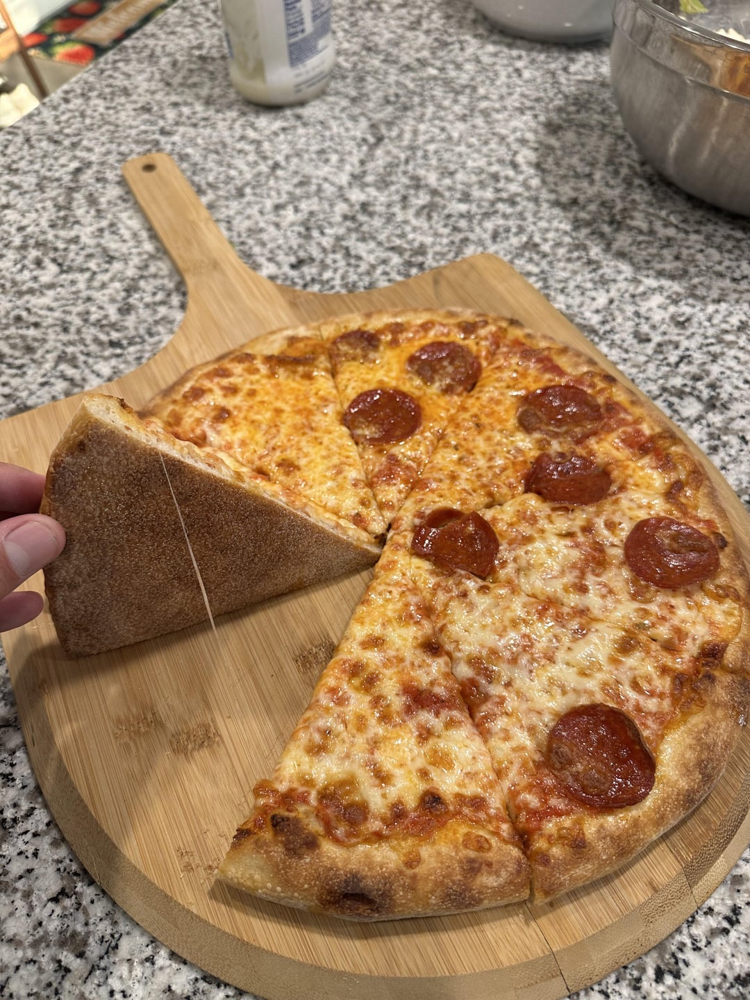 I use a cast iron skillet. If you want a crush more like pizza hut add 2 T of olive oil to the pan. Also you can try adding some dry milk powder to your dough for a lighter dough.