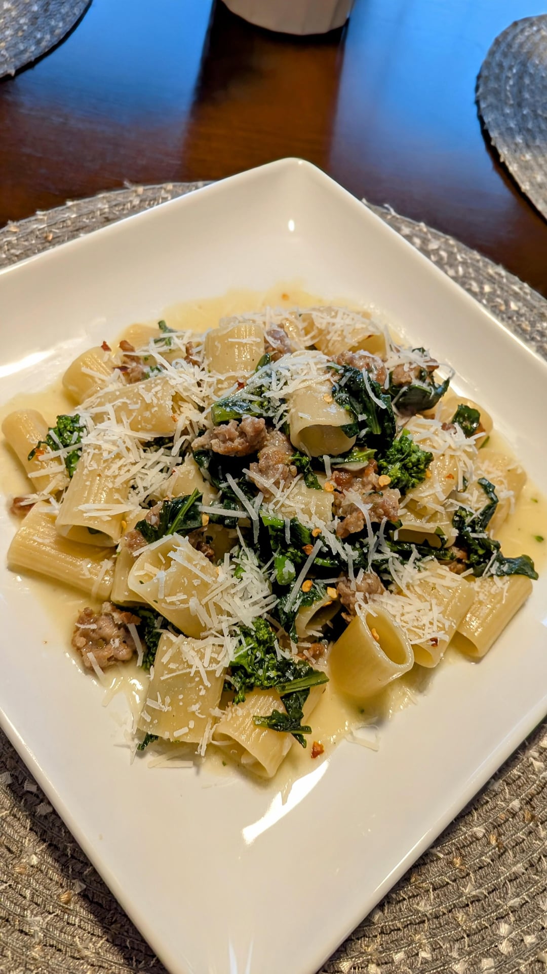 One of my favorites. Rigatoni with sweet Italian sausage and broccoli rabe. Fresh garlic, crushed red pepper, white wine, chicken stock, Pecorino Romano cheese. Really enjoy using the Barilla bronze cut pasta for this dish.by YogurtclosetBroad872 1 Comment WhiteRhino19 7 months ago Looks Yum 🤤Write A CommentYou must be logged in to post a comment.