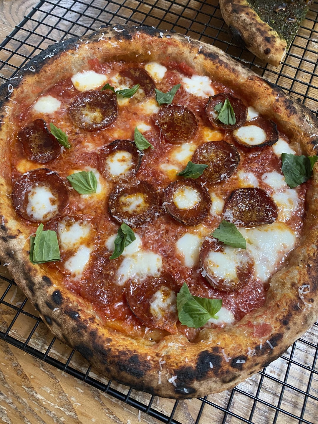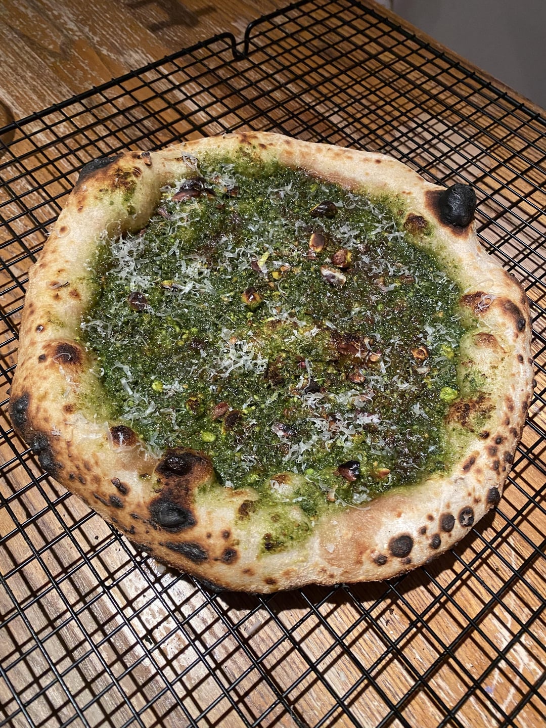 The pies pictured…Pepperoni, standard margarita, pistachio rosemary pestoSourdough recipe: 200g string bread flour 400g pizza flour 8g salt 360g water 200g active leavinby XL_M3OW Write A CommentYou must be logged in to post a comment.